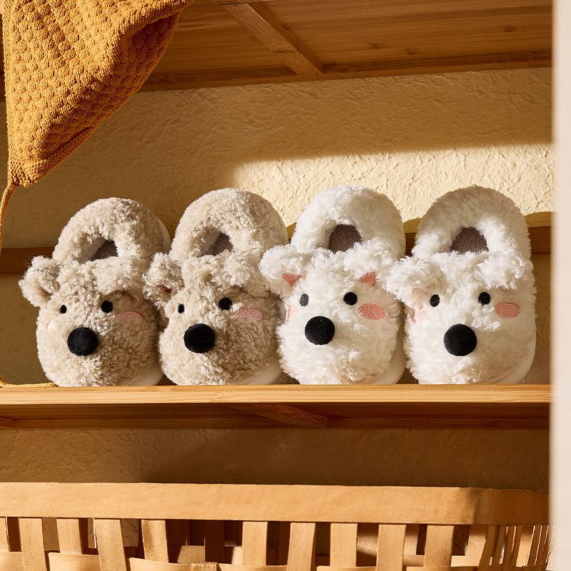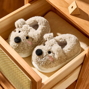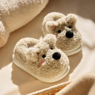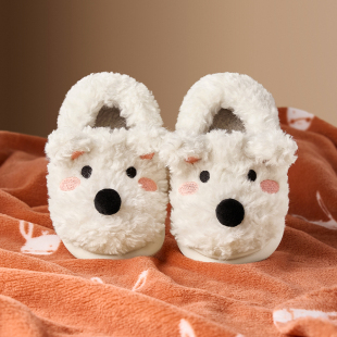 女宝包跟居家棉鞋 宝宝室内拖鞋 女童小狗冬季 可爱西高地儿童棉拖鞋