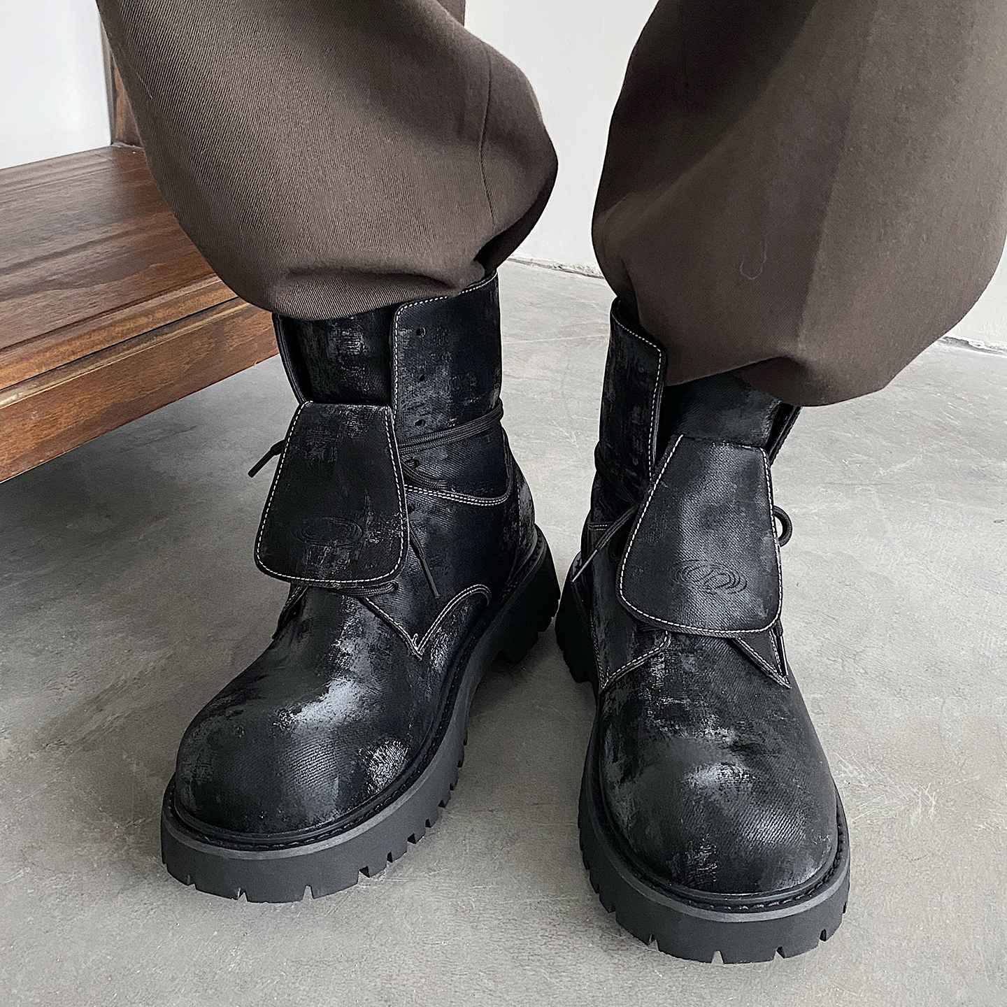 中帮机车靴子男生增高皮靴 2025新款 马丁靴男款 英伦风黑色高帮皮鞋