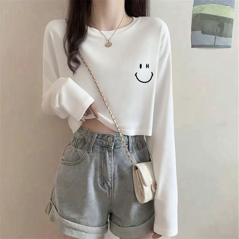 闺蜜上衣 ins学生港风oversize宽松短款 纯棉休闲长袖 t恤女春秋新款