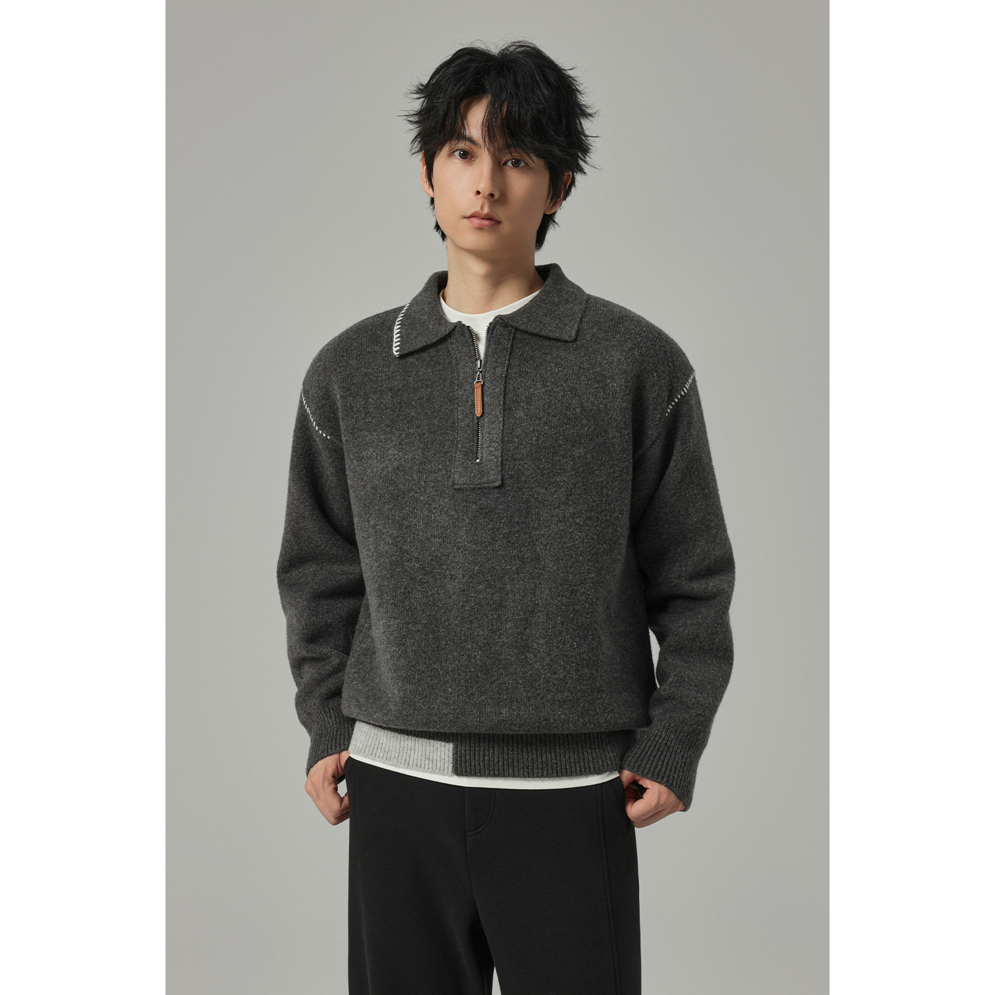 CLIMAX VISION圈圈纱松弛感亨利领套头毛衣外套含绵羊毛针织衫