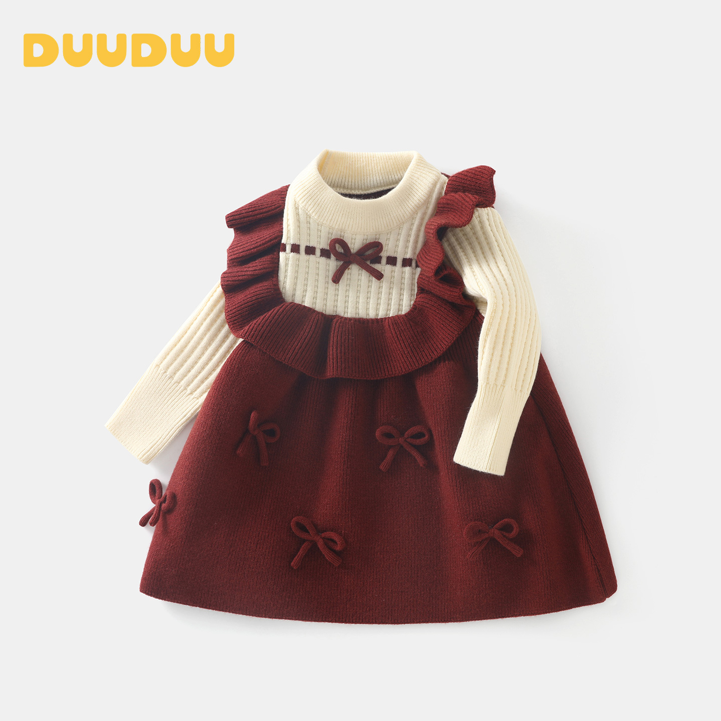 DUUDUU女小童秋冬装 毛衣连衣裙洋气小女孩公主裙女宝宝针织裙子