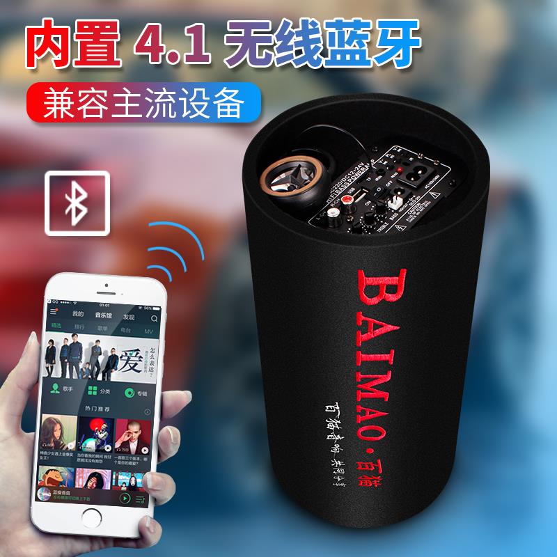百猫车载低音喇叭汽车音响12V24V机车蓝牙重低音货车改装 圆筒音箱