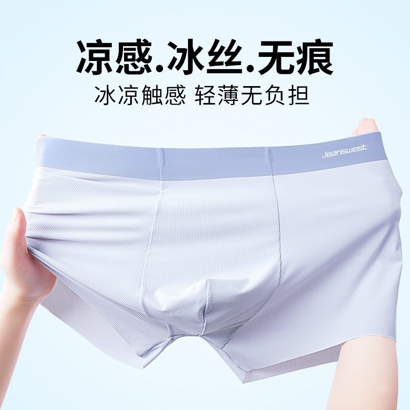 裤 抑菌內裆无痕透气凉感薄款 衩平角抗菌无感丝滑轻薄 冰丝内裤 男士