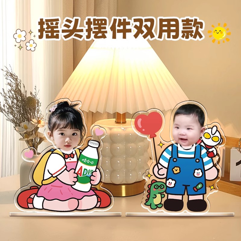车载摇头摆件定制太阳能汽车摇摇乐Diy宝宝照片亚克力车内装 饰品