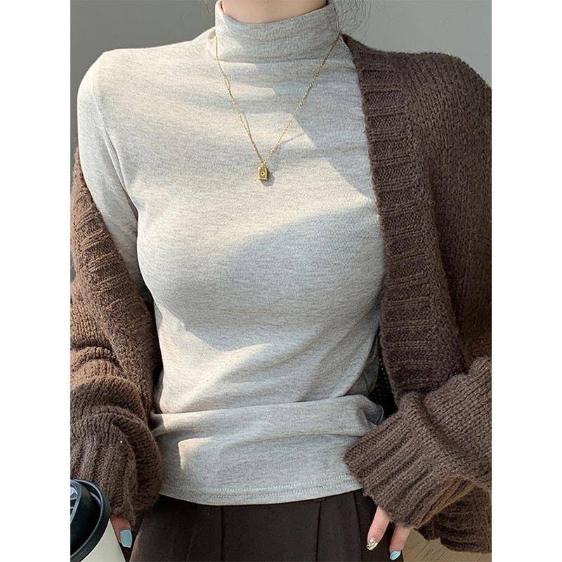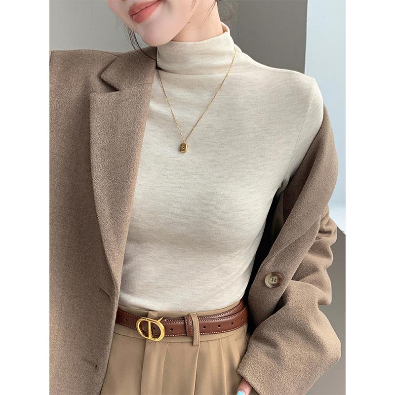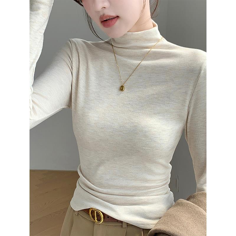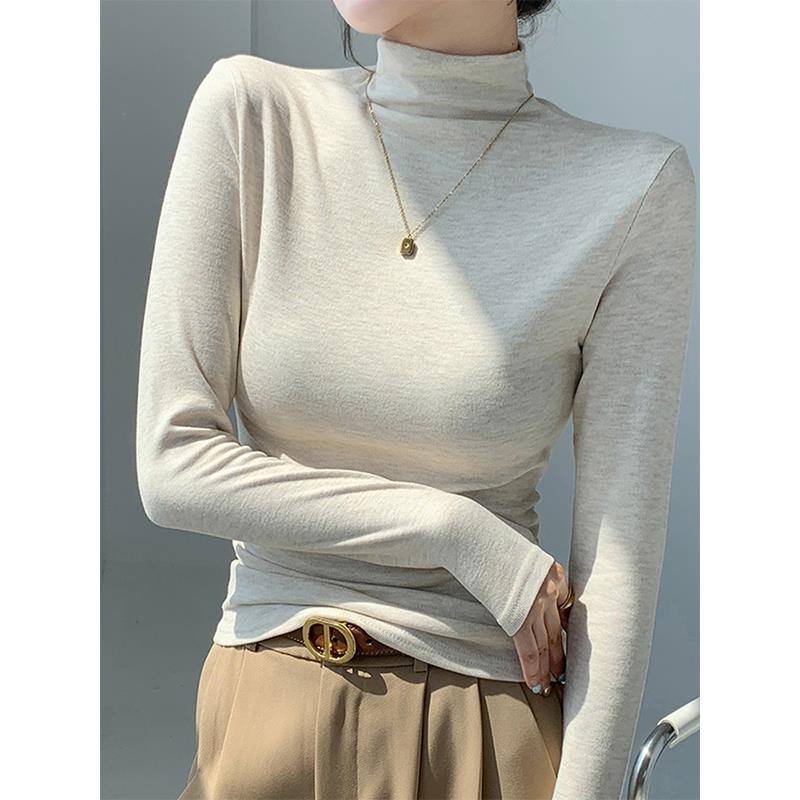 显瘦堆堆领长袖 洋气修身 T1008r1 内搭秋冬新款 米白色半高领打底衫