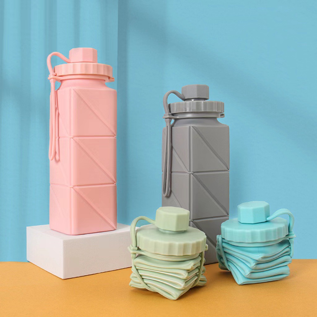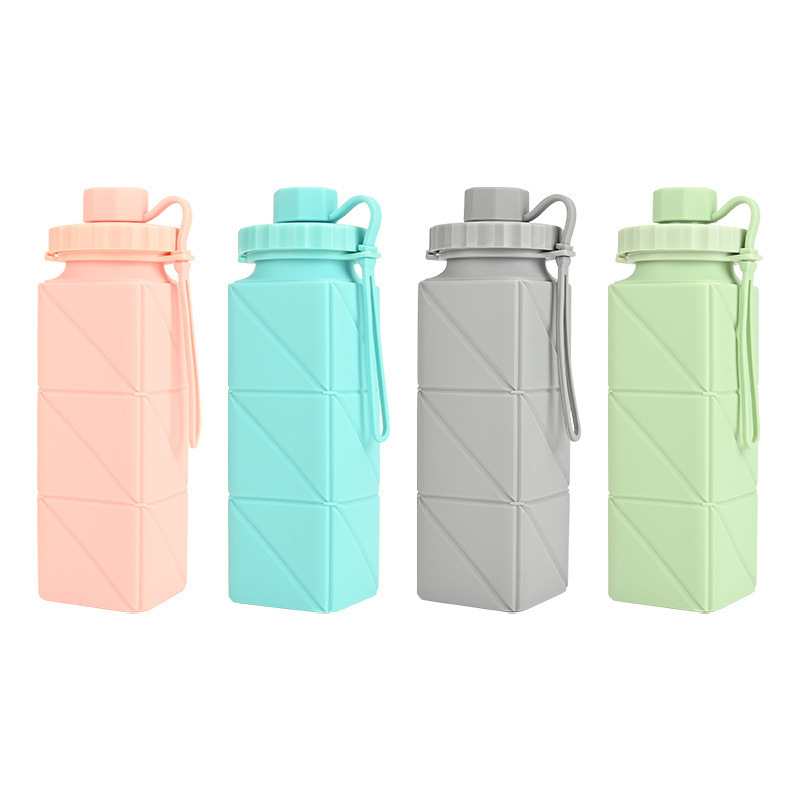 硅胶折叠水杯户外旅行运动便携水壶压缩伸缩瓶方形伸缩水杯随身杯