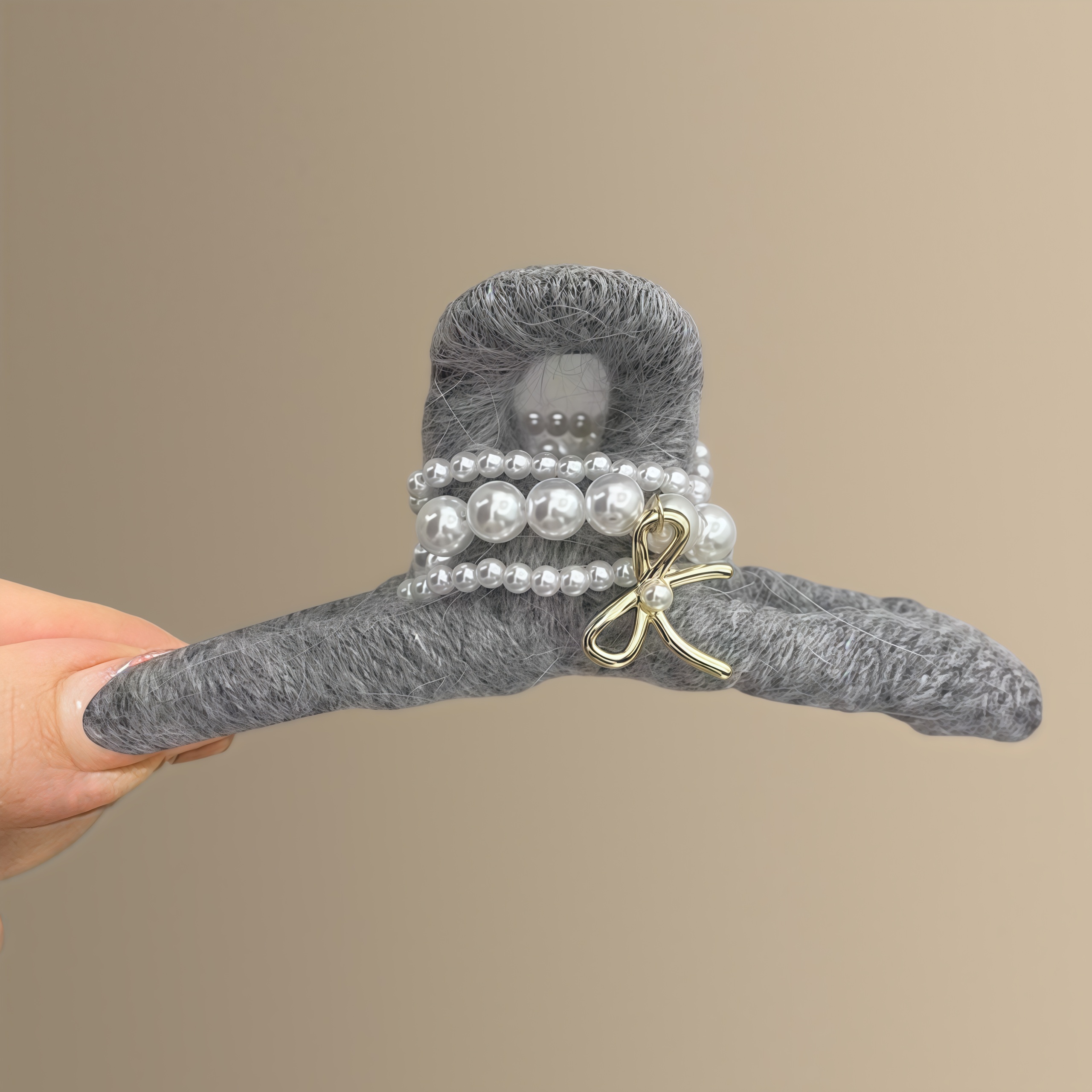 韩国秋冬羊毛毡抓夹女高级感珍珠鲨鱼夹大号时尚 半扎盘发抓发拎环
