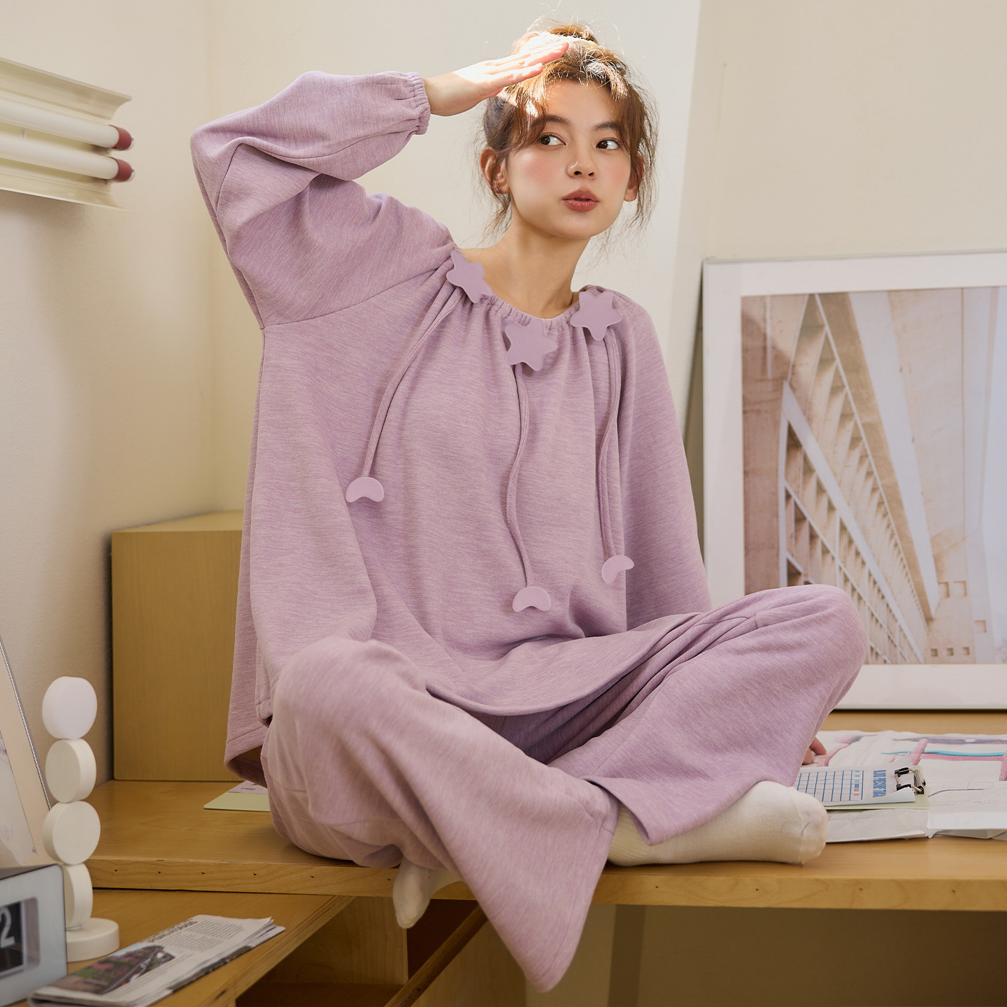 可外穿 家居服套装 双面德绒2025年新款 女士圆领阳离子保暖长袖