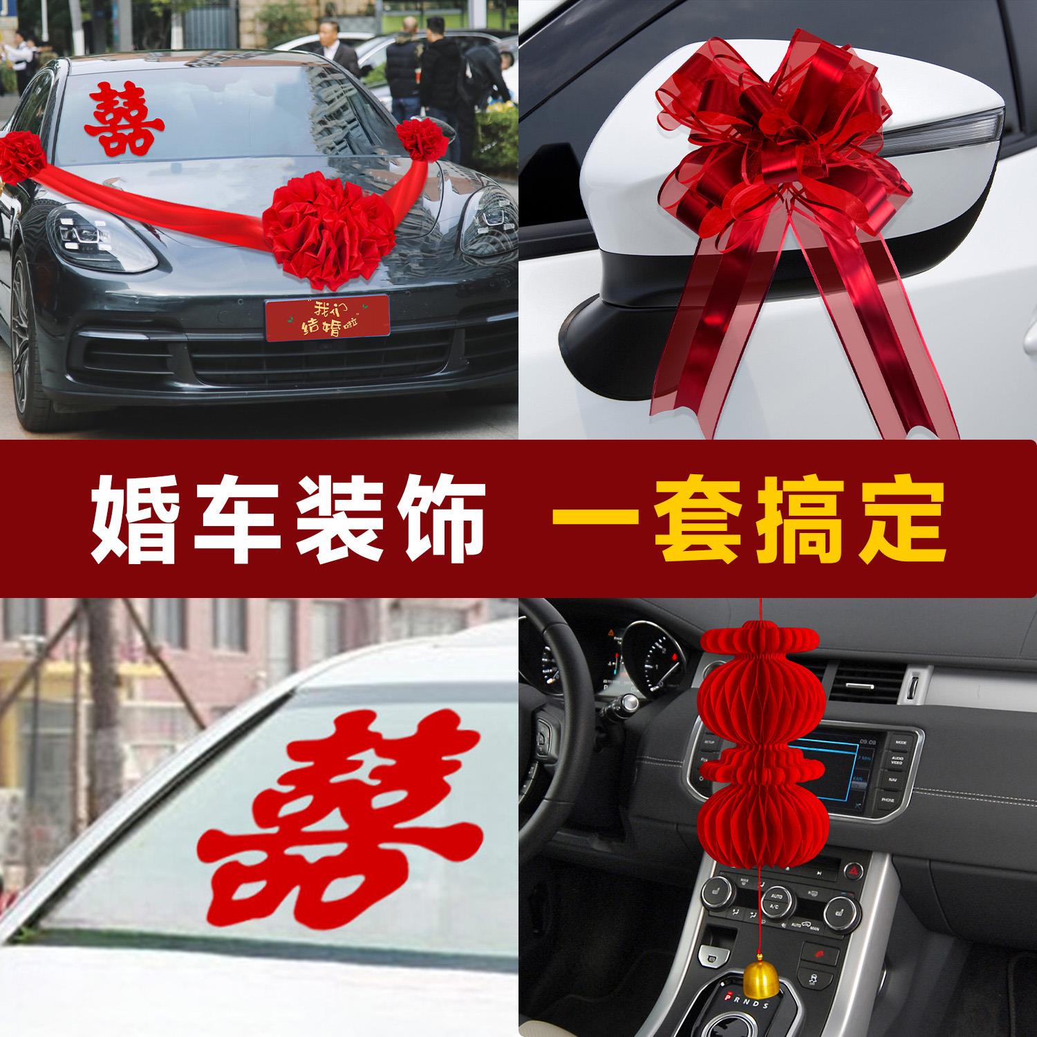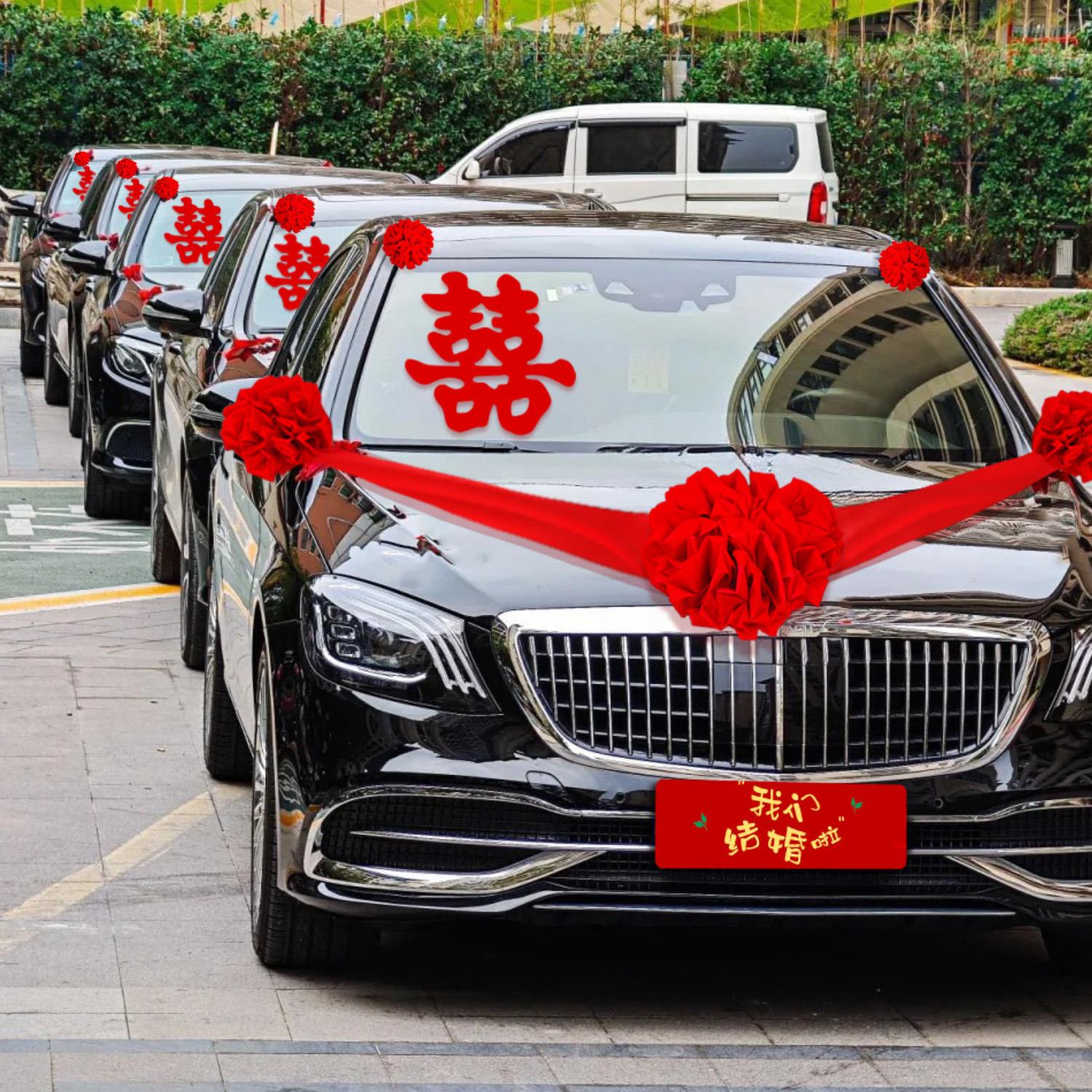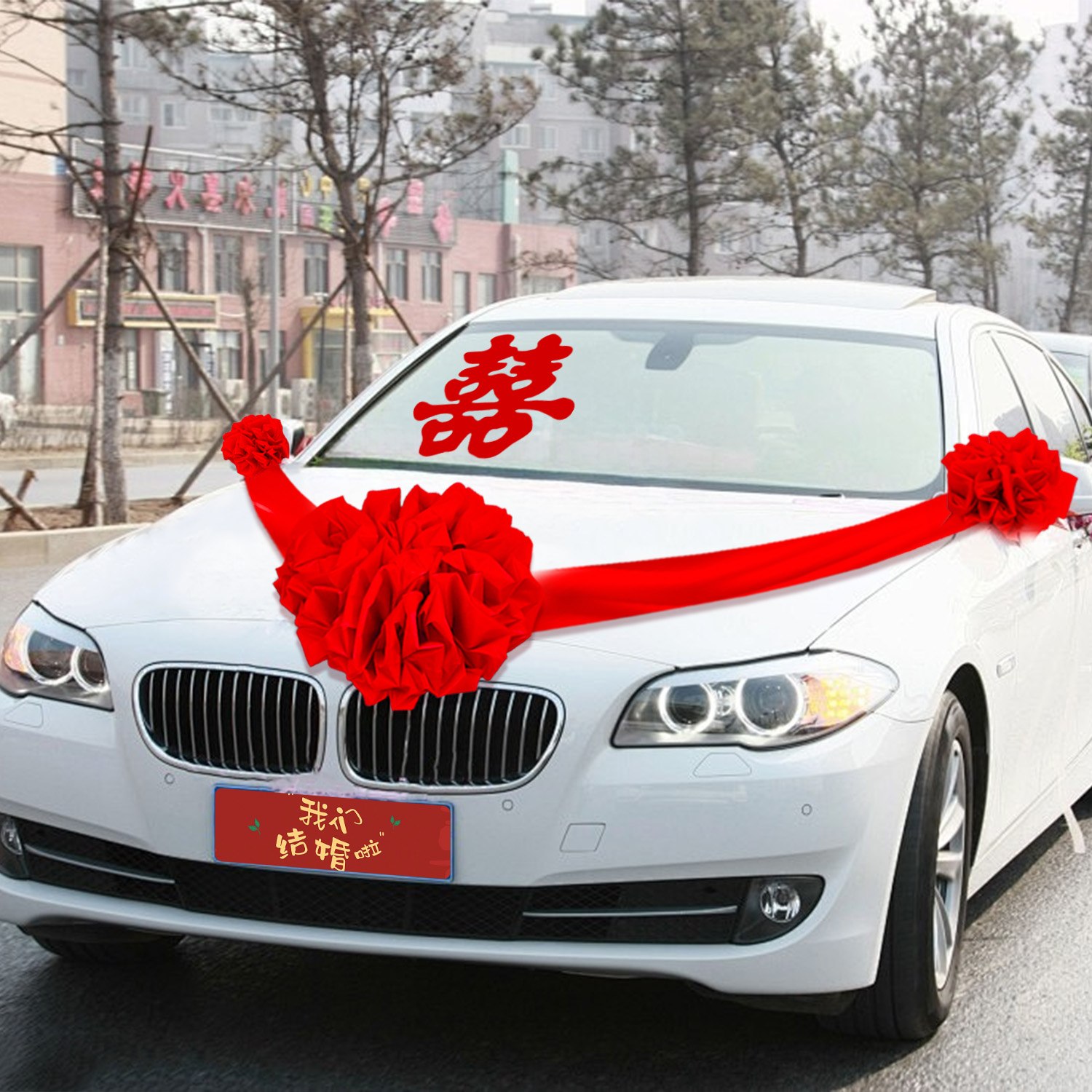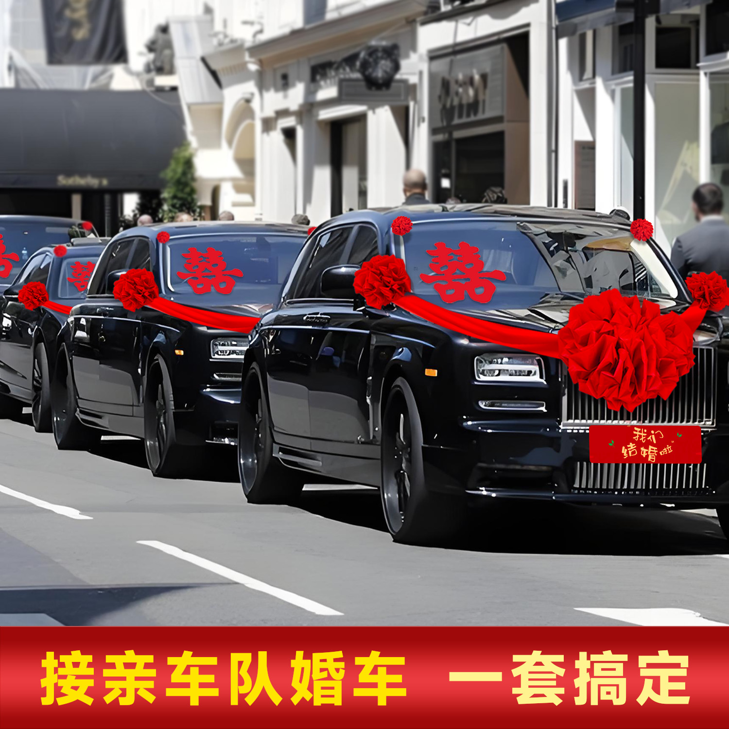 婚车装 饰车头拉花接亲车大红花球结婚全套高级车队汽车布置头车花