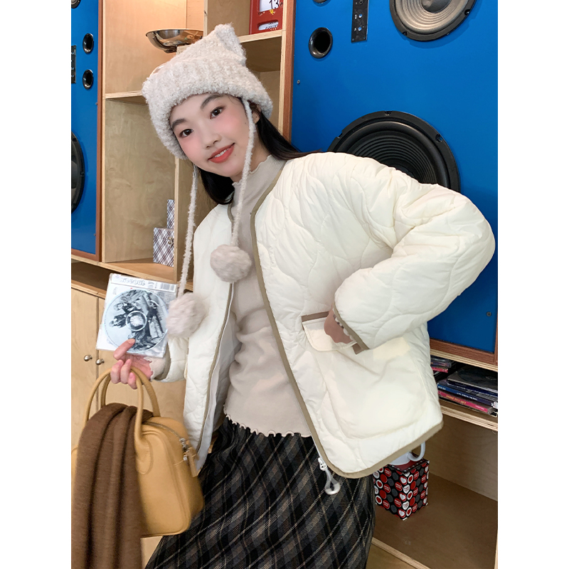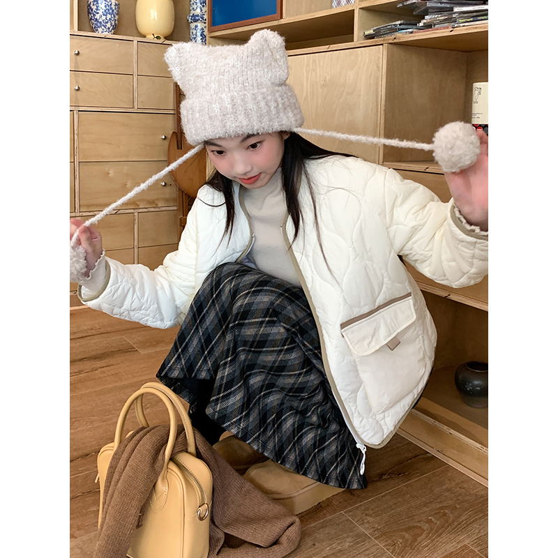 奶油泡芙针织拼接毛衣羽绒棉服女2025秋冬新款 韩国高级感保暖外套