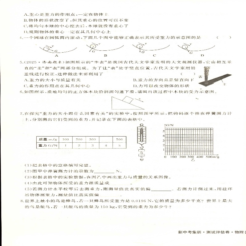 2025六三制8八年级全一册物理测试评估卷新中考集训山东美术出版 社配沪科版