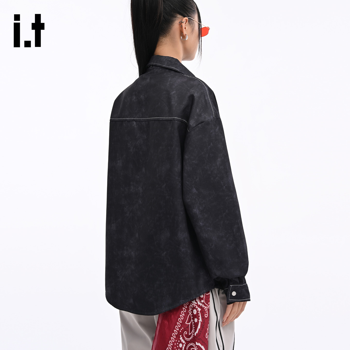 2025春秋季 FIVECM黑色水洗扎染宽松翻领牛仔外套男士 上衣 5cm