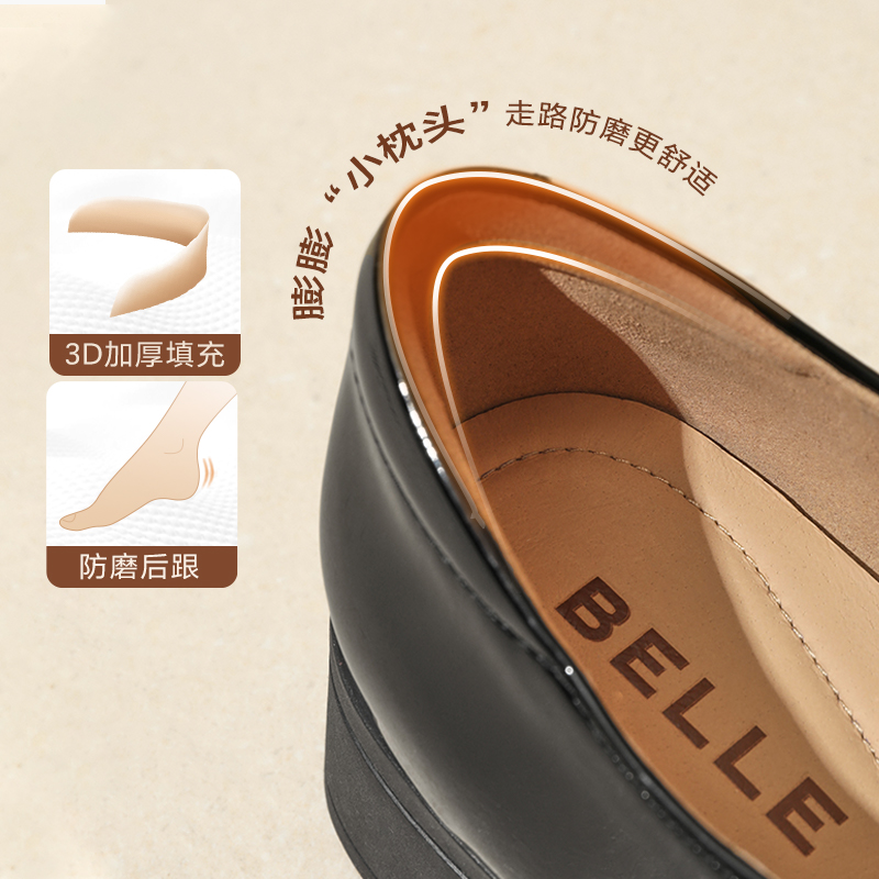 真皮浅口单鞋 新款 子E1T1DCQ5预 女2025秋季 百丽复古粗高跟玛丽珍鞋