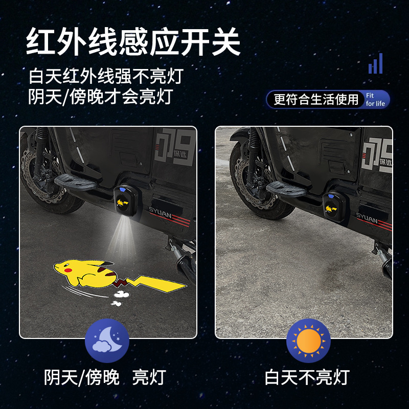 汽车迎宾投影灯电池款 饰 迎宾灯车门动态照地灯氛围灯卡通投影仪装