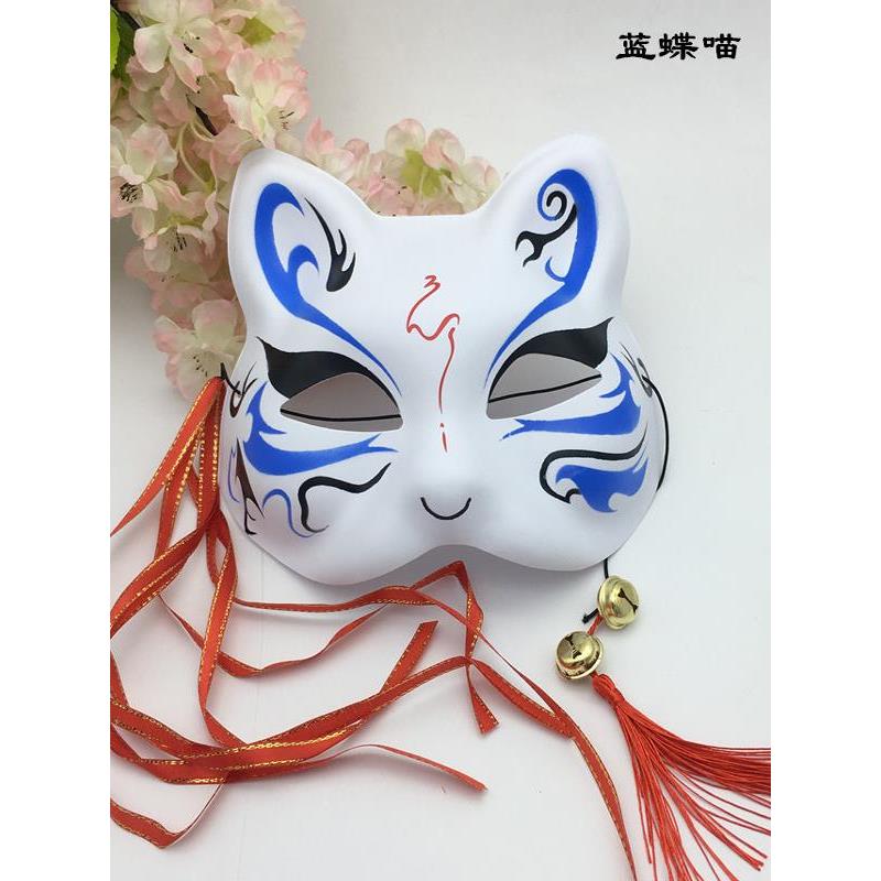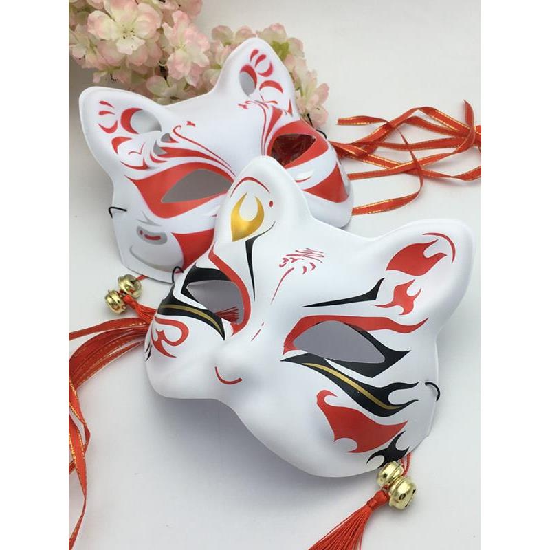 古风汉服面具配饰彩绘日式 化妆舞会cos动漫猫脸面罩 和风狐狸半脸