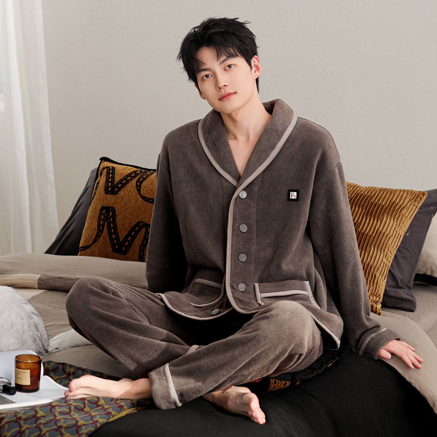 海岛绒家居服套装 加绒加厚保暖珊瑚绒2025新款 睡衣秋冬季 轩靓男士