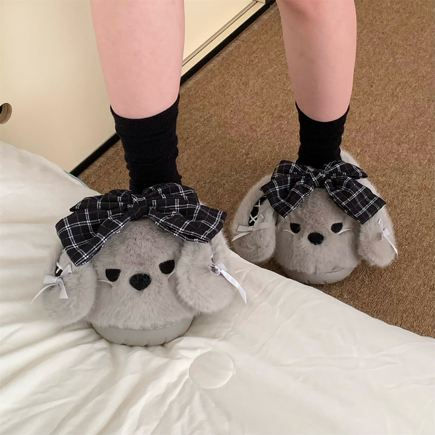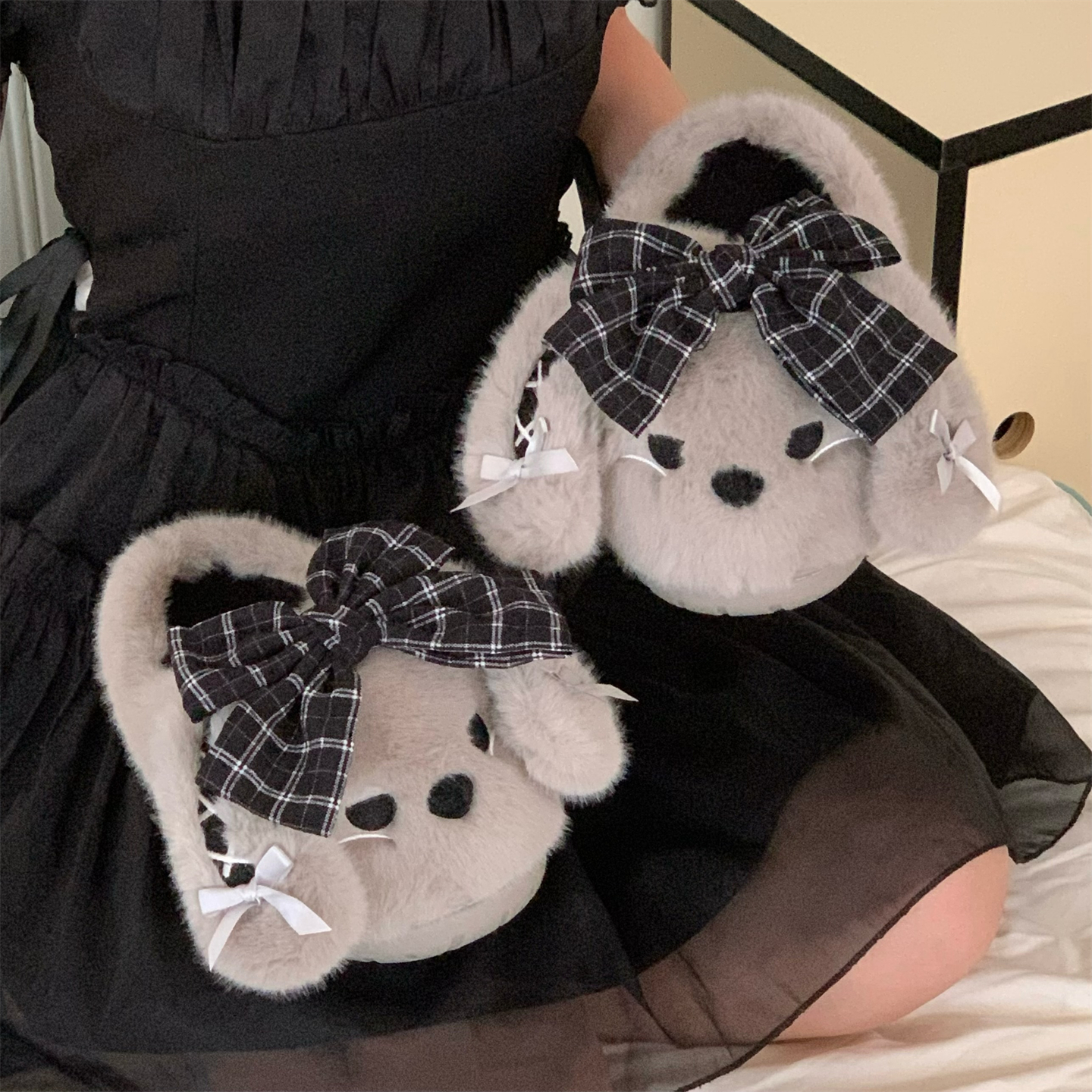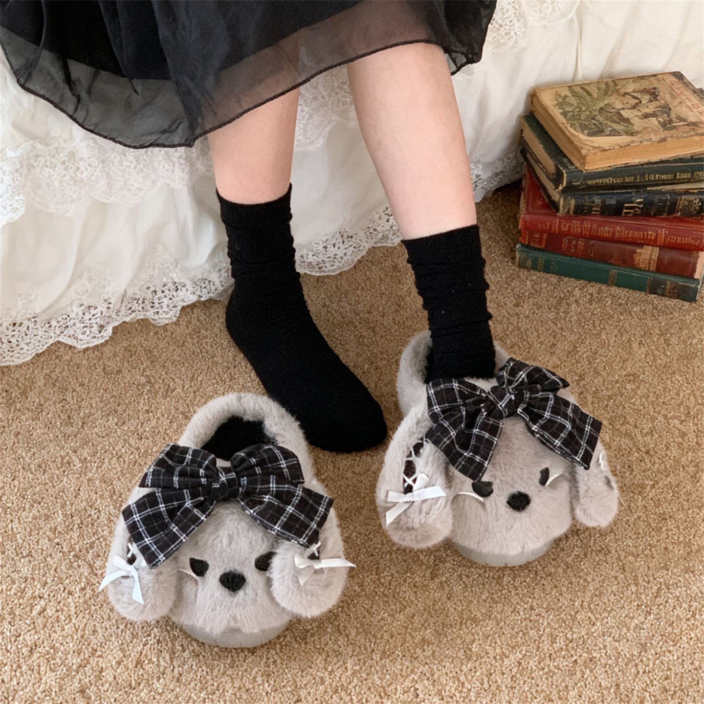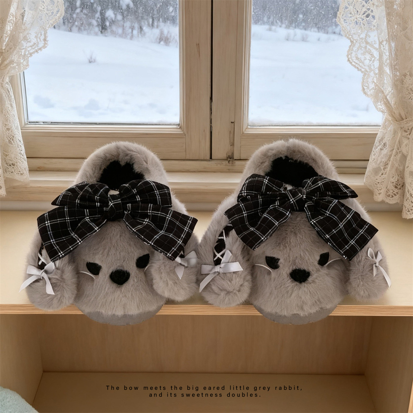 软底毛毛鞋 女士洛丽塔蝴蝶结小兔子居家棉拖鞋 少女心保暖防滑冬季