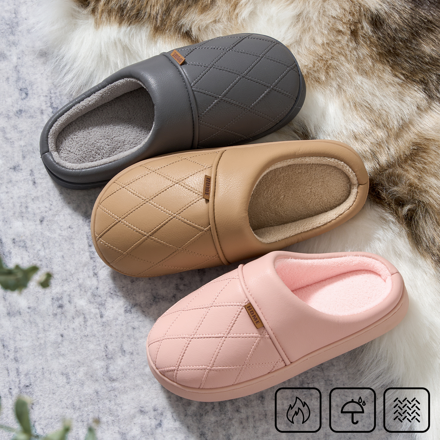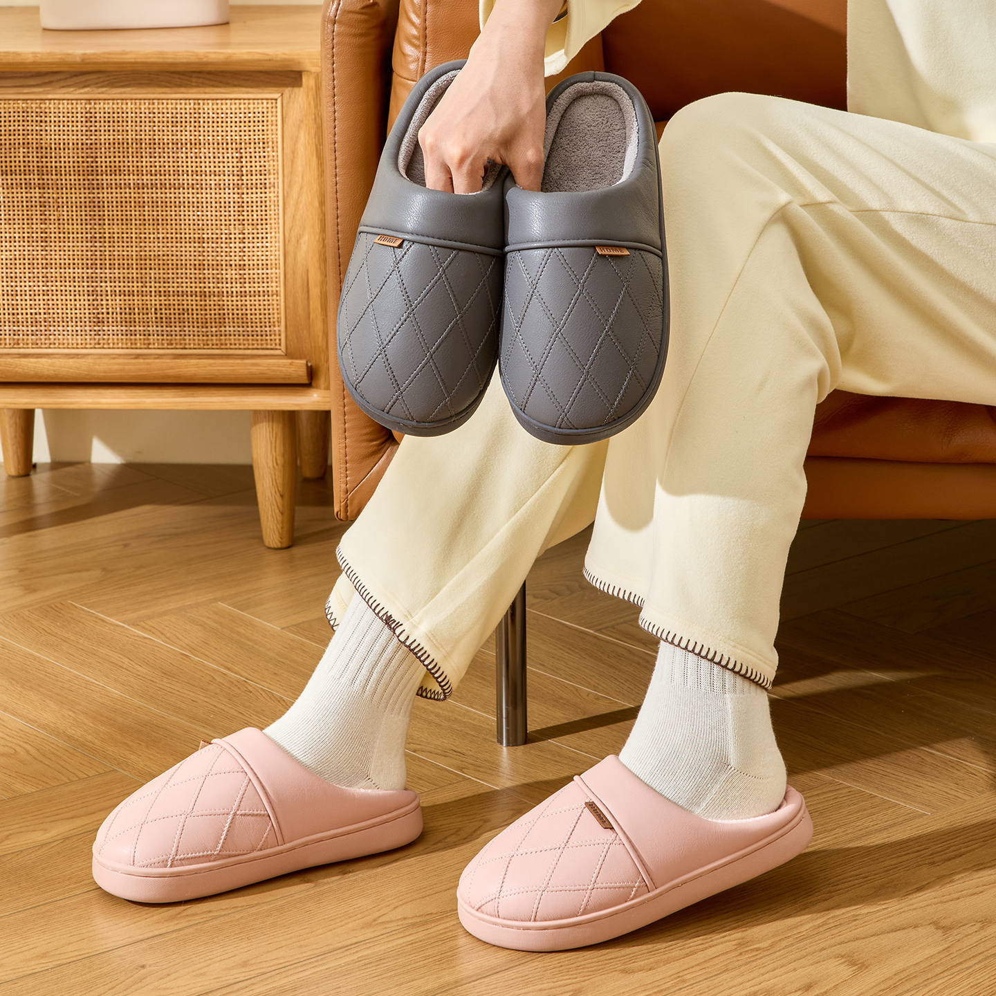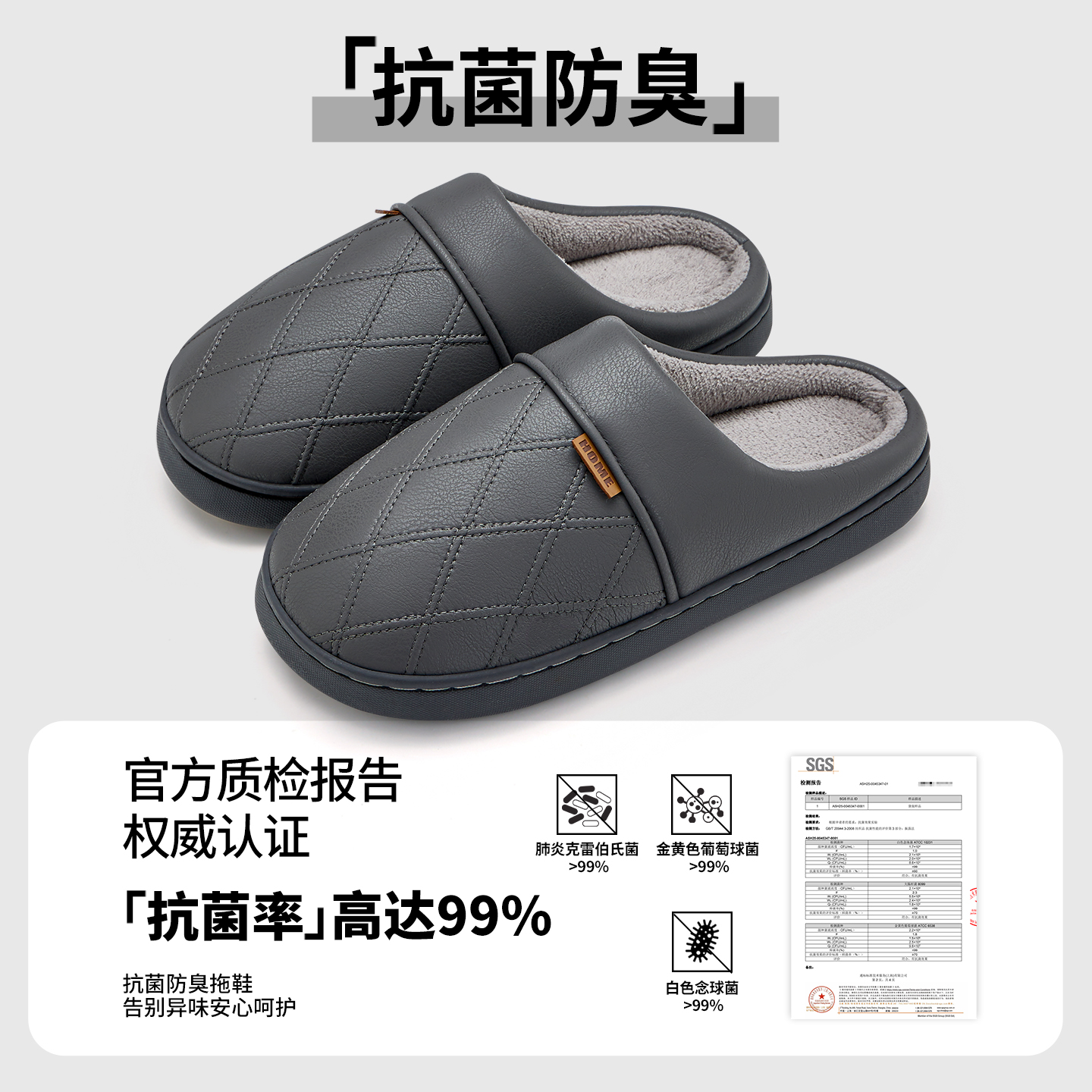 家居防水皮面拖 秋冬季 老人防滑防摔棉拖鞋 老年人专用抗菌防臭男士