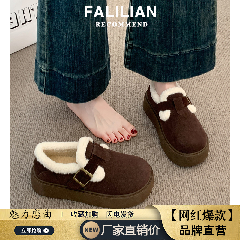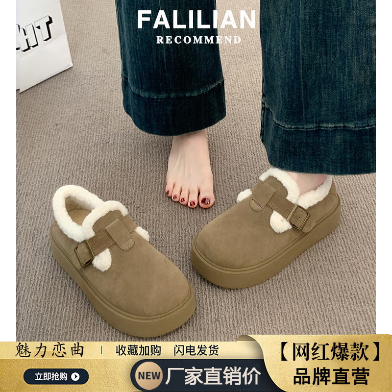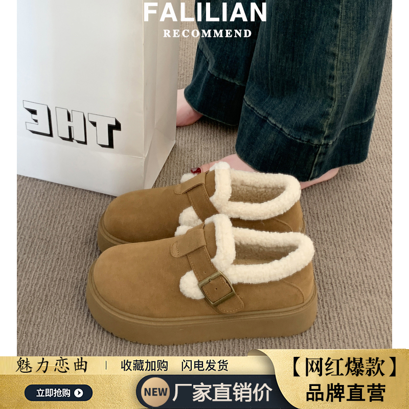 博肯棉鞋 厚底加绒豆豆勃肯鞋 乐福鞋 秋冬季 子保暖雪地靴 女2025新款