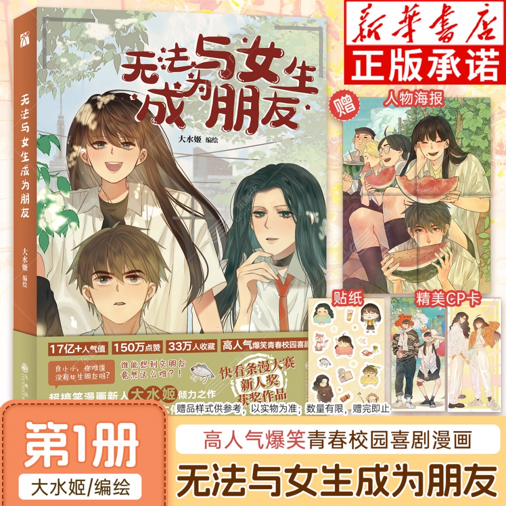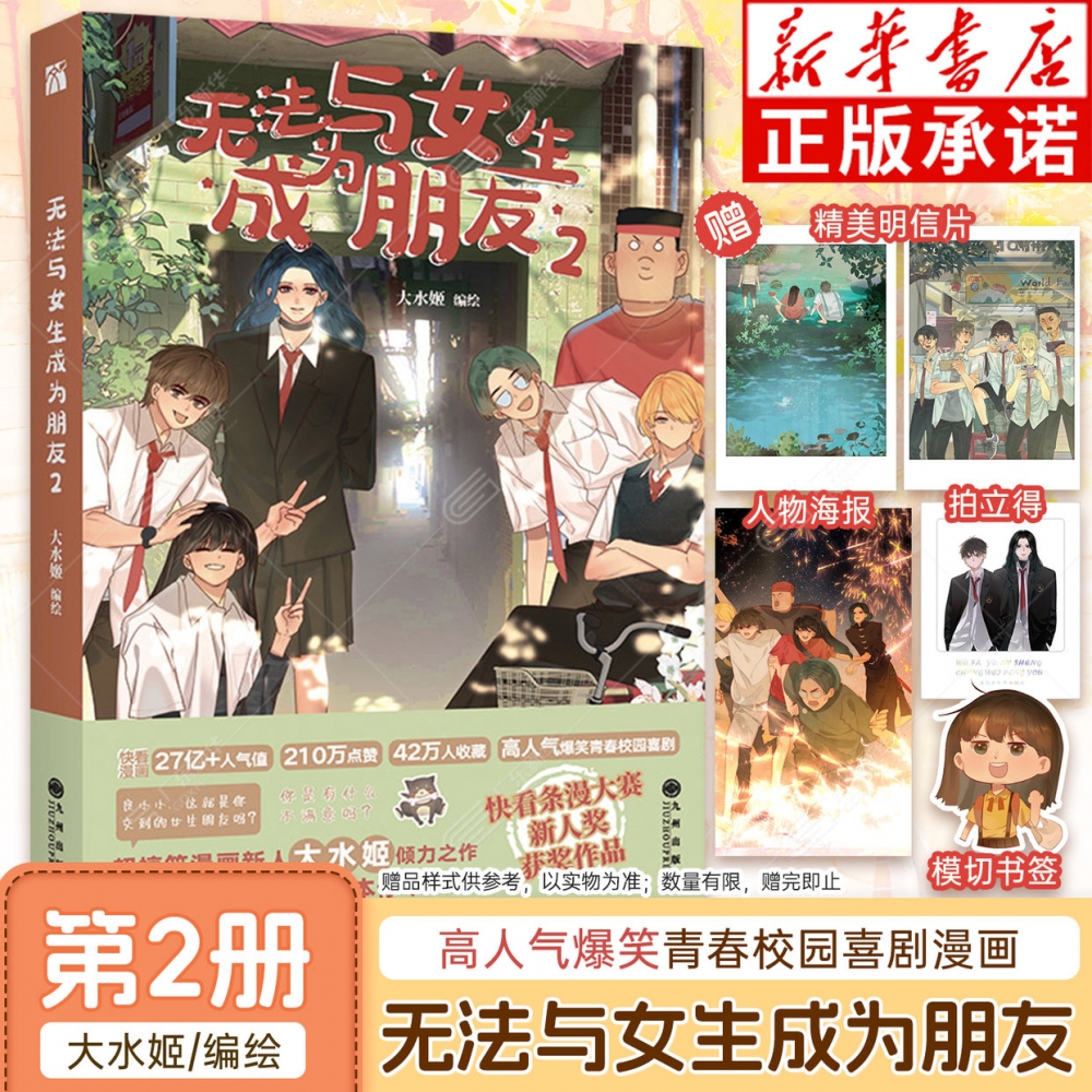 拍立得 青春文学 贴纸 快看漫画爆笑高人气青春校园喜剧漫画 编绘 无法与女生成为朋友大水姬 cp卡 明信片 书签 随书赠海报