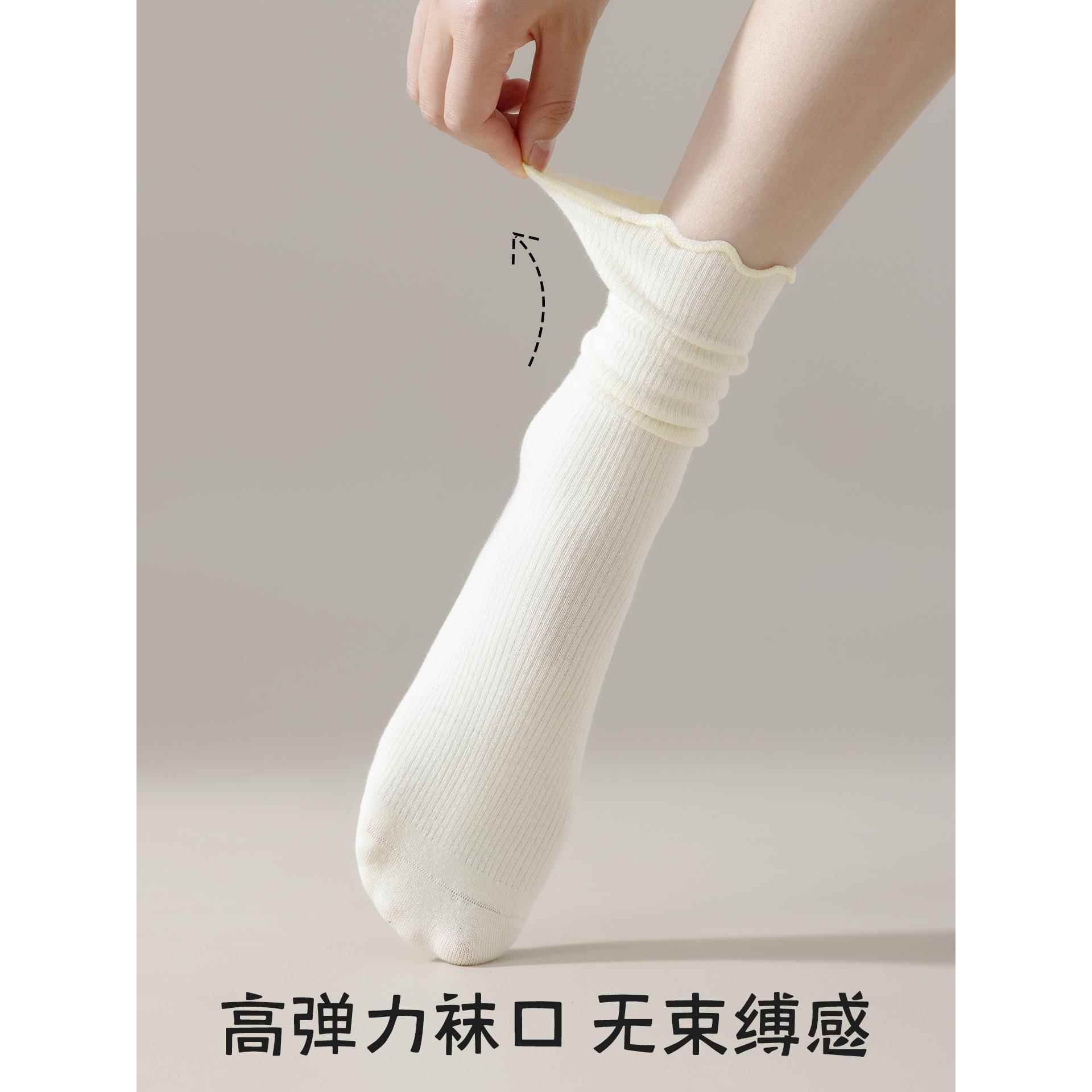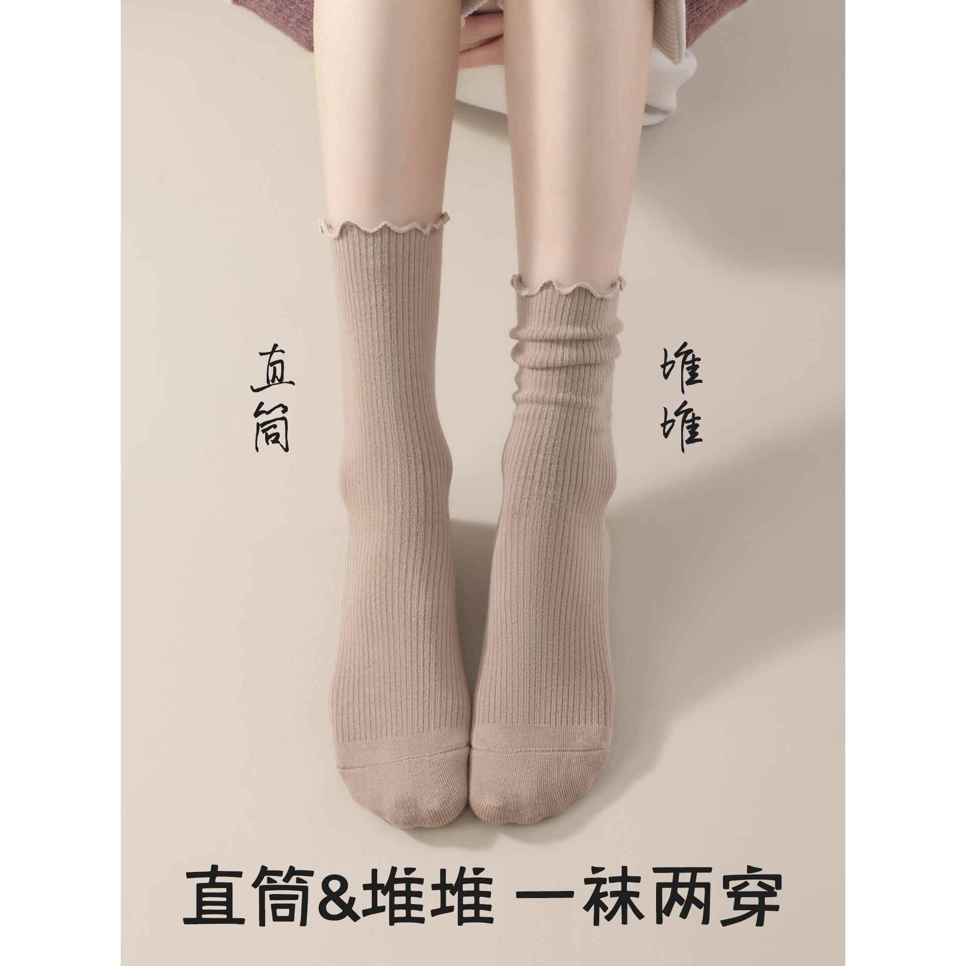 爆款 堆堆袜子女士春秋冬季 花边中筒袜纯棉无骨月子长筒袜2025新款