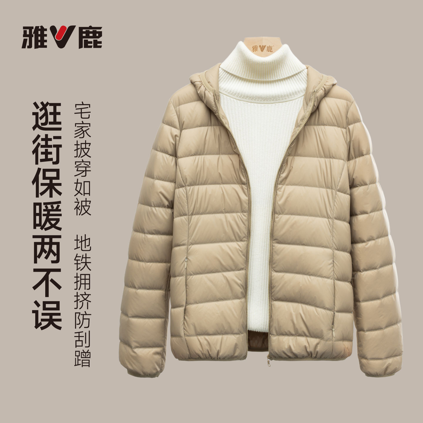 雅鹿轻薄羽绒服女短款 休闲连帽内搭叠穿保暖防寒外套 2025秋冬新款