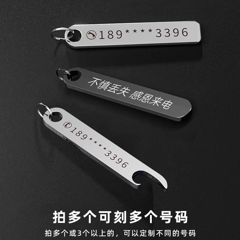 防丢号码 牌钥匙扣挂件男女汽车链不锈钢挂饰电话手机定制激光刻字