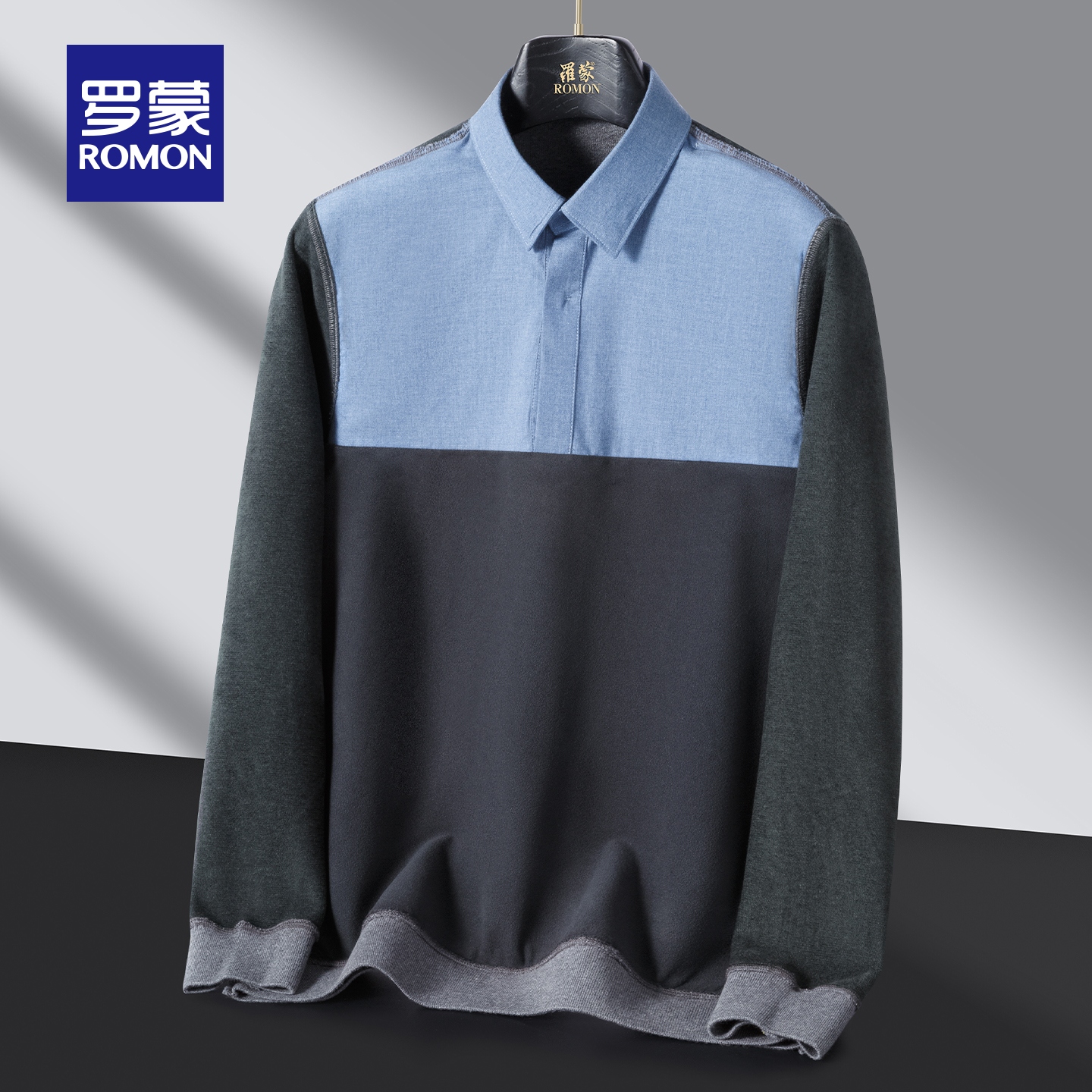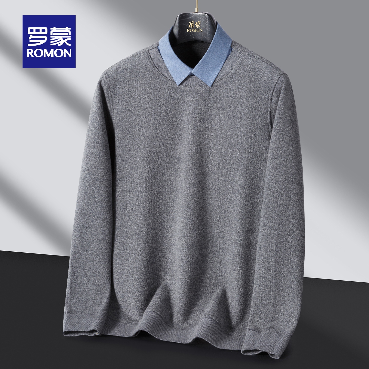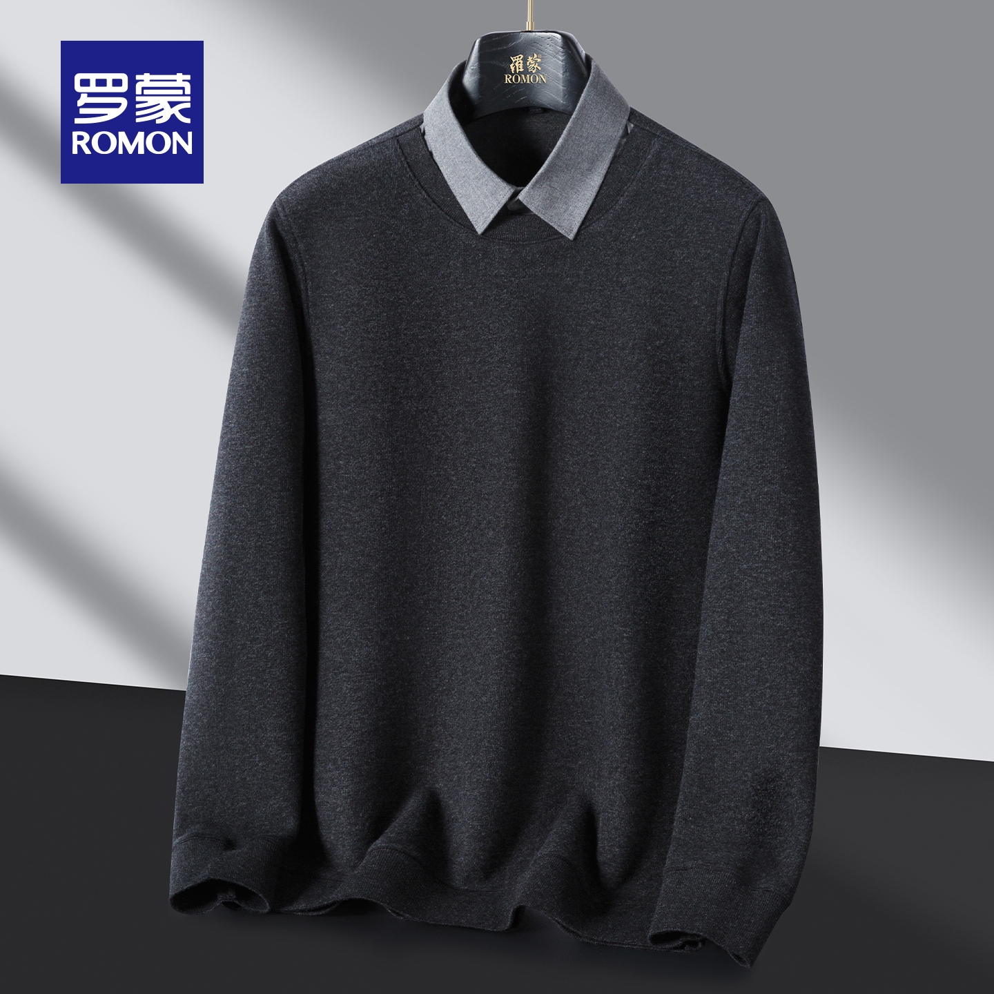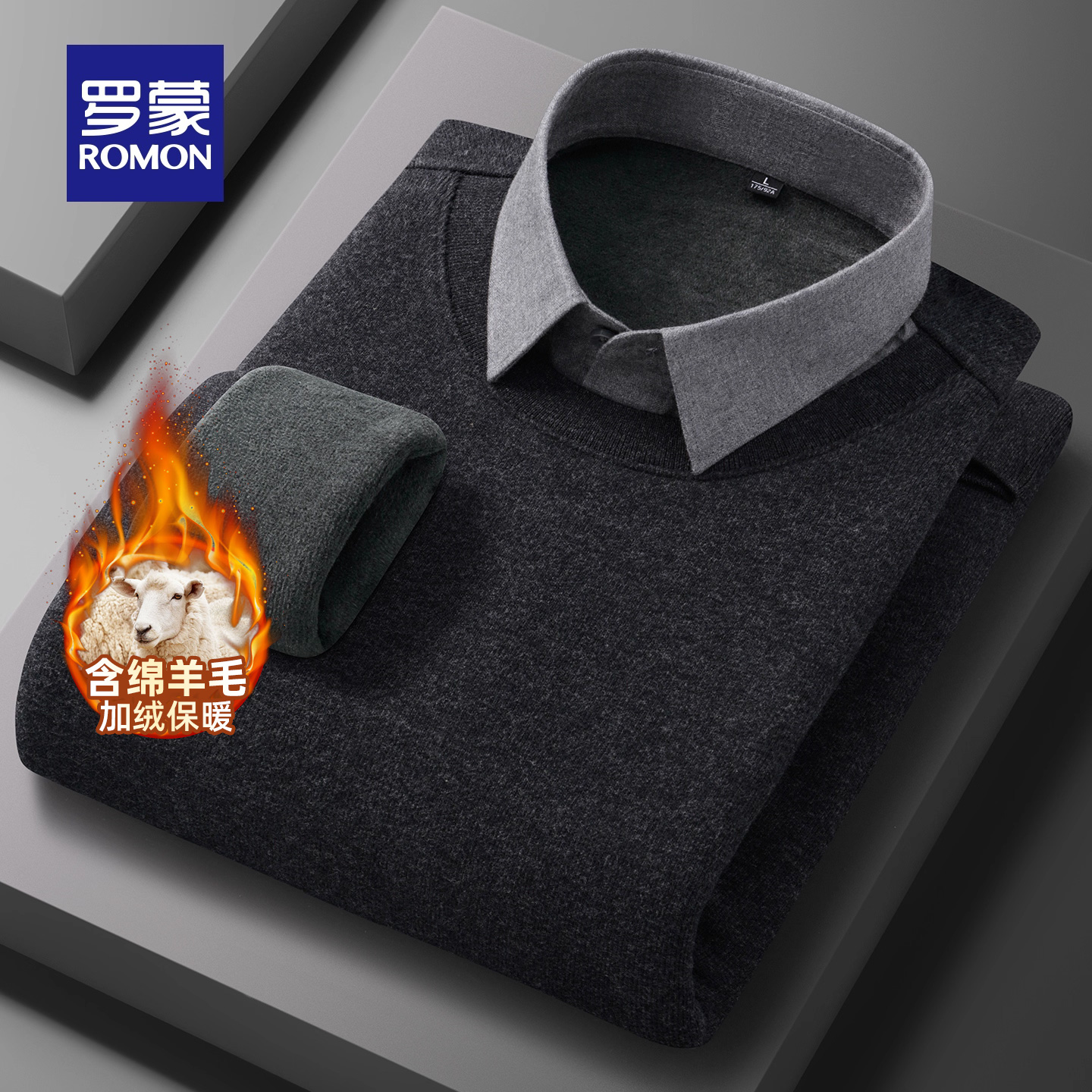 罗蒙男士 桑蚕丝 加绒针织衫 2025冬季 假两件毛衣 新款 含绵羊毛