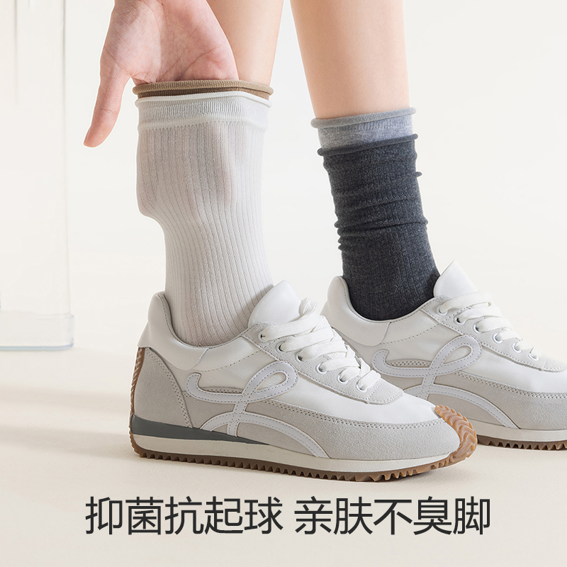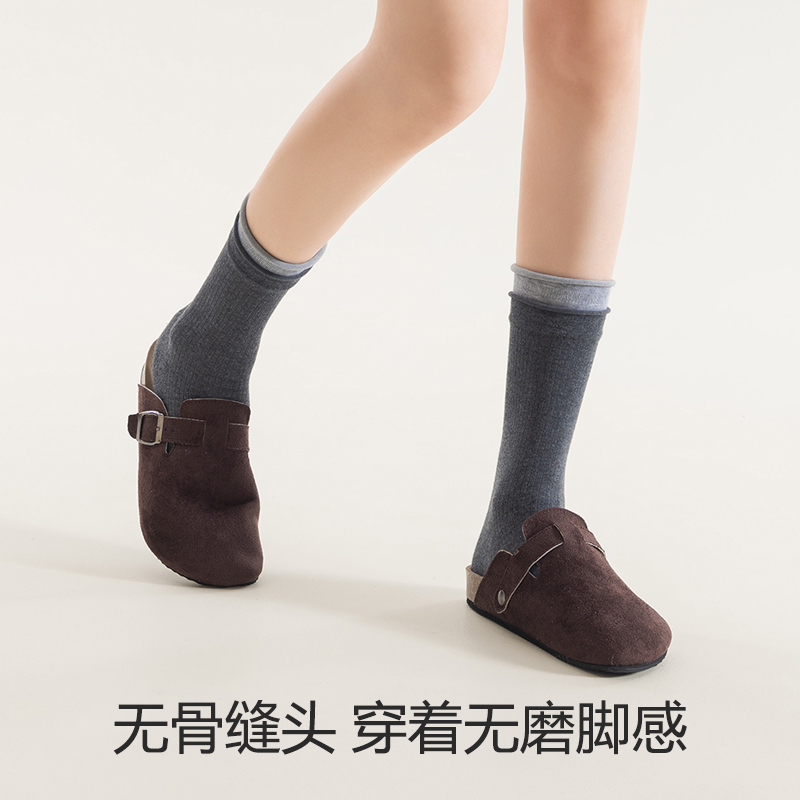 袜子女纯棉配勃肯鞋 美拉德ins潮中筒袜秋冬无骨泡泡袜女士 春秋款