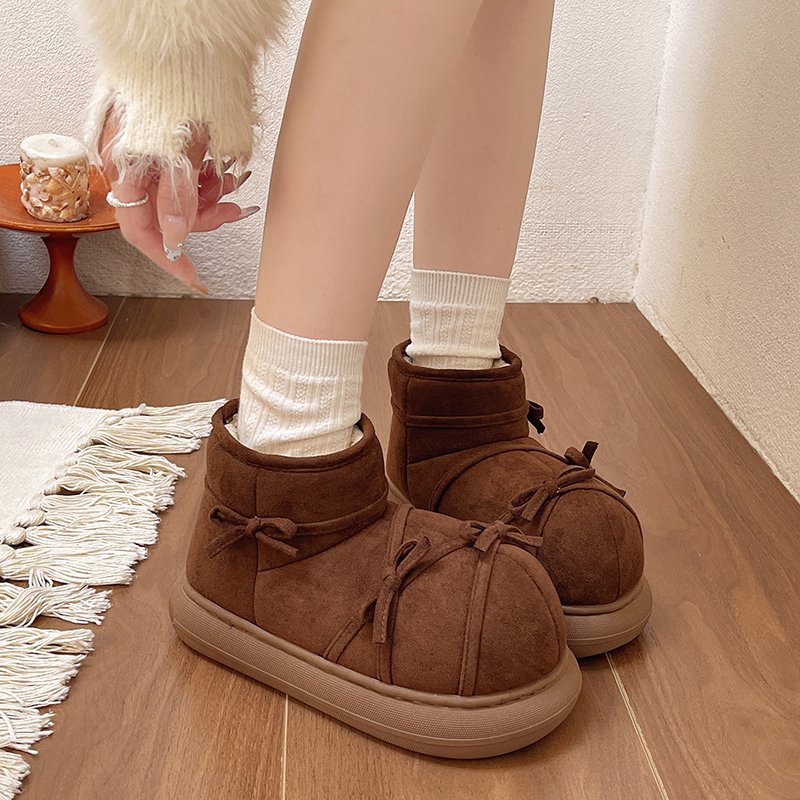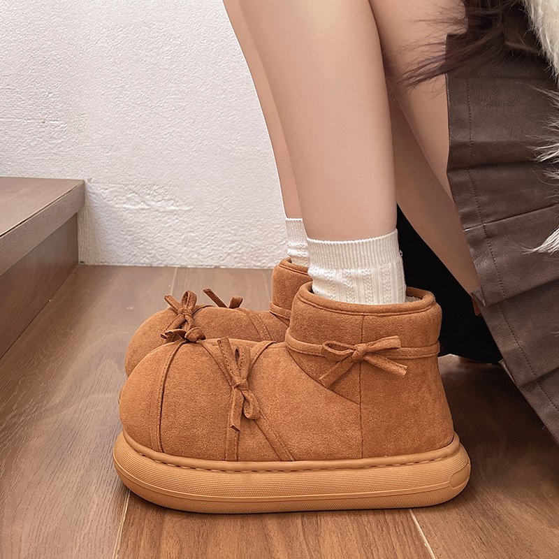 美拉德可爱气质蝴蝶结加绒棉鞋 外穿软厚底保暖舒适雪地靴 女秋冬季