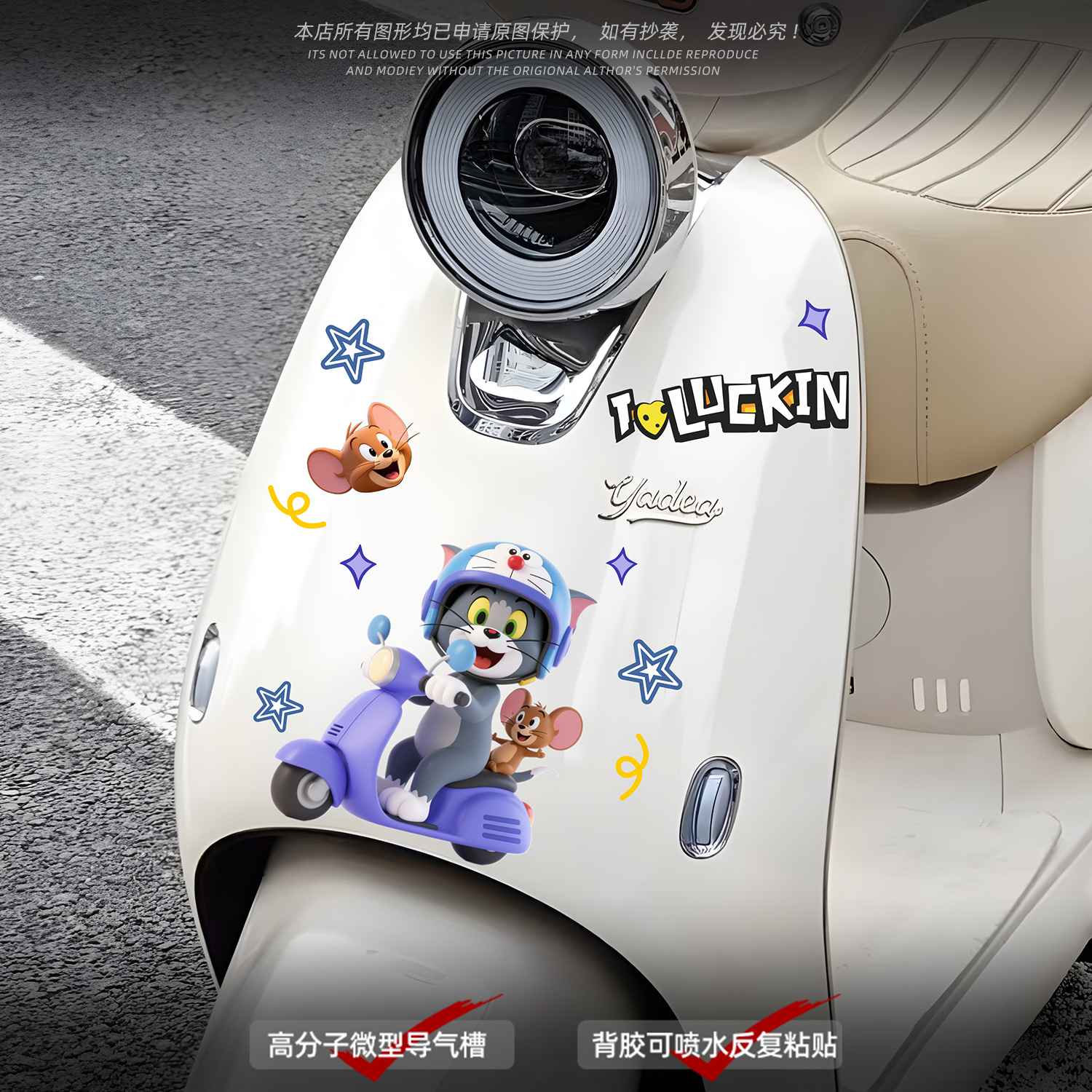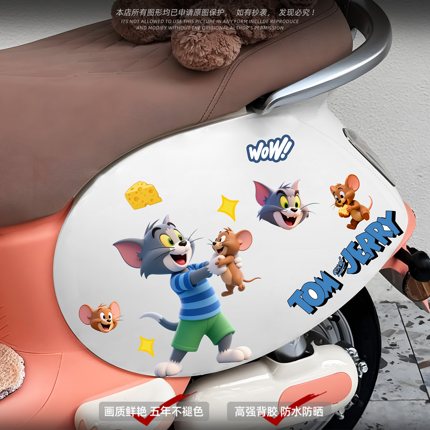 贴膜拉花 涂装 电动车贴纸猫和老鼠3D电瓶车划痕遮挡装 饰摩托车个性