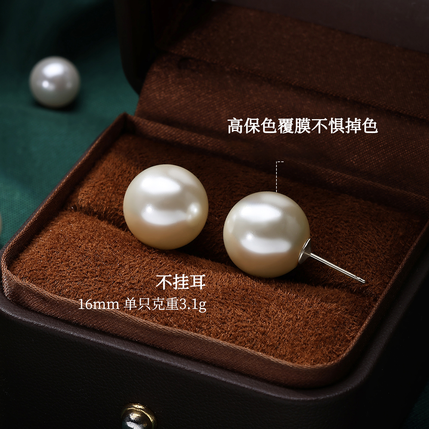 施家正圆珍珠耳钉女纯银无耳洞耳夹轻奢耳环2025新款 百搭耳饰 爆款