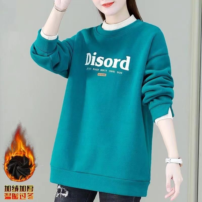 假两件加绒保暖洋气减龄上衣中年妈妈装 卫衣女新款 中长款 秋冬大码