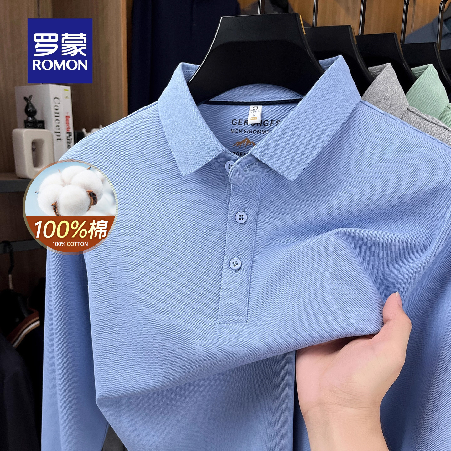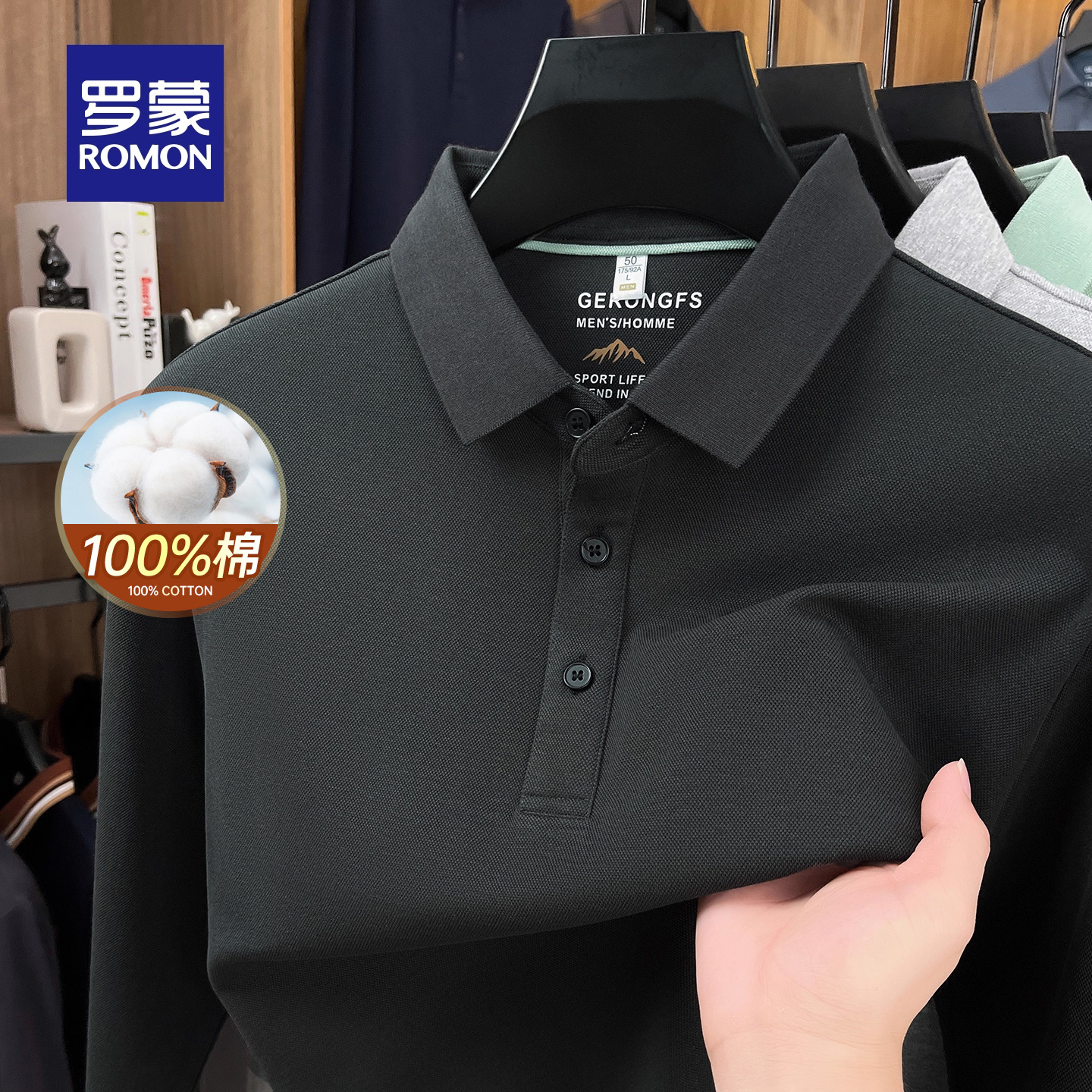 商务长袖 罗蒙男士 POLO衫 2025秋季 休闲纯色翻领T恤男 新款 纯棉