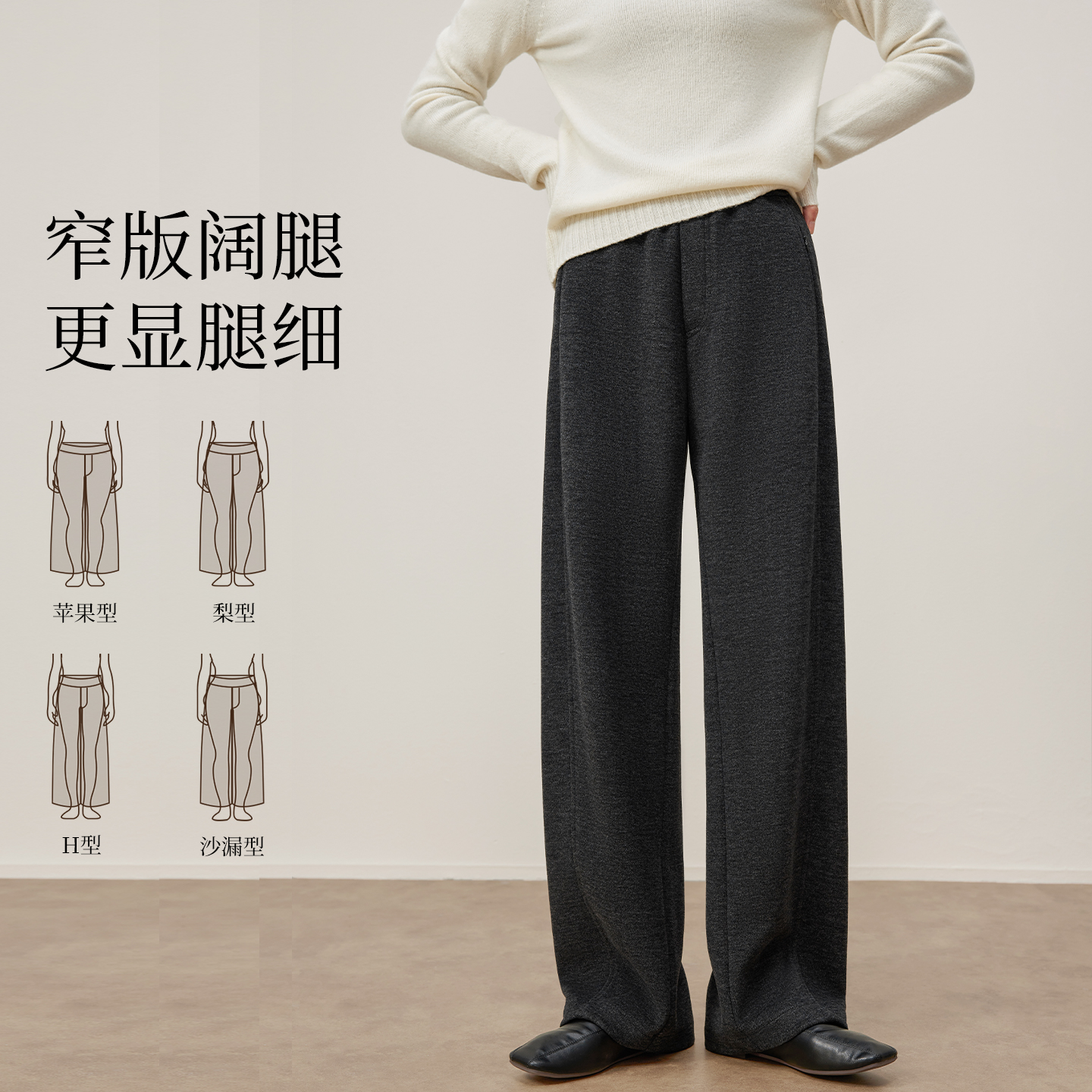女秋冬季 2025新款 高腰醋酸羊毛裤 直筒裤 宽松显瘦小个子窄版 阔腿裤