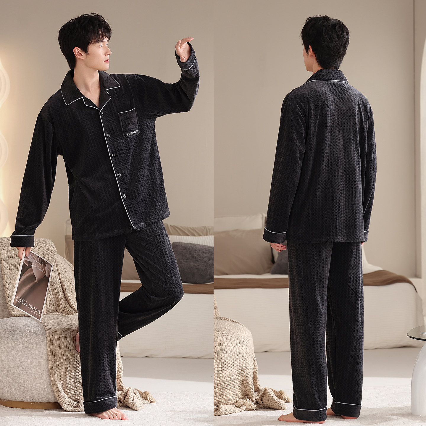 保暖家居服套装 睡衣男2025秋冬新款 海岛绒加绒加厚珊瑚绒休闲长袖