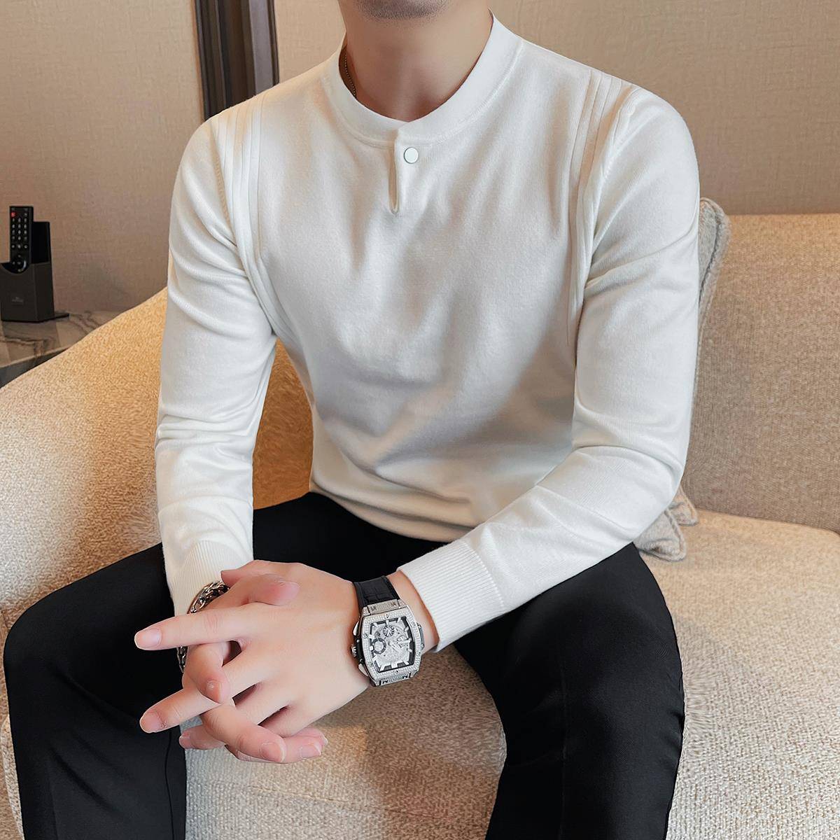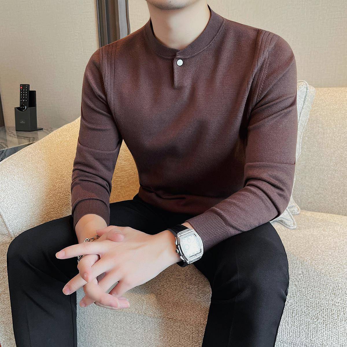 潮流修身 时尚 针织打底0930u 2025新款 秋冬感亨利领纽扣毛衣男长袖