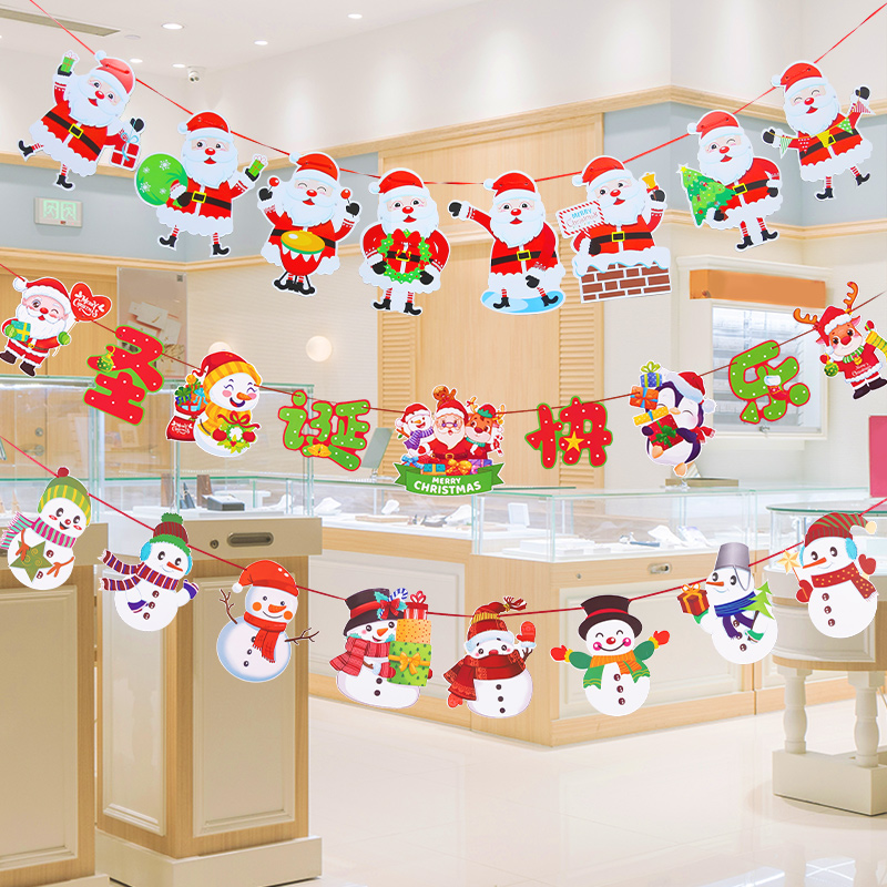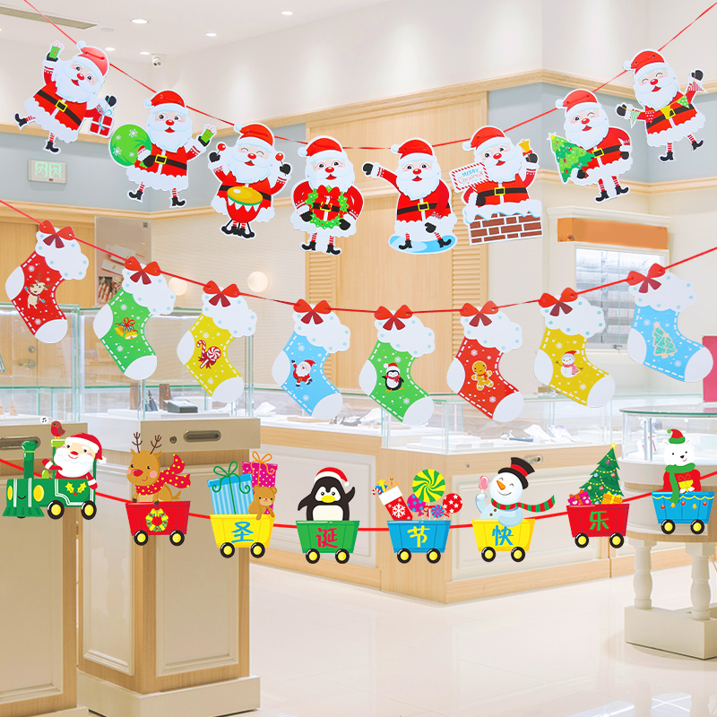 圣诞节装 饰品拉旗拉花商场珠宝店面餐厅氛围场景布置圣诞老人挂饰