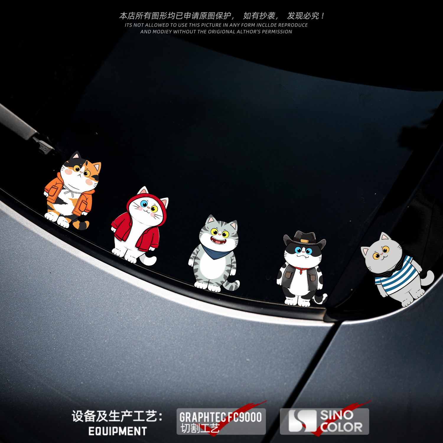 原创肥财猫汽车贴纸车身划痕遮挡侧后窗玻璃装 贴画 饰防水创意涂装