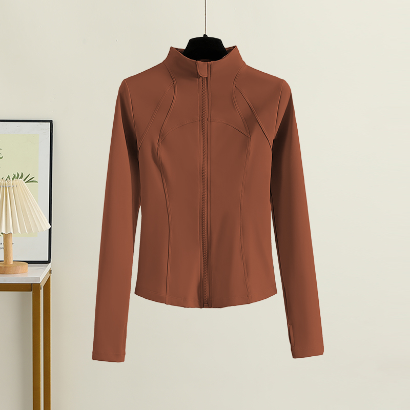 秋冬季 保暖加绒外套女立领双拉链瑜伽上衣运动夹克健身服 显瘦修身