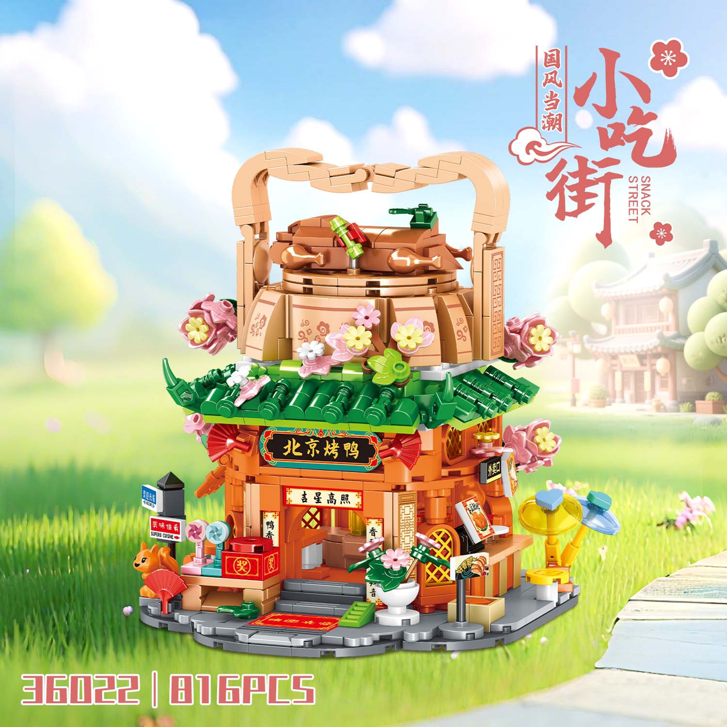 古风国潮街景积木小吃街美食店模型8拼图建筑房子益智玩具6到12岁