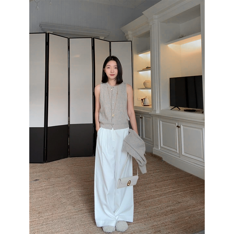 上衣百搭阔腿裤 郭九九呢 新款 秋季 兔毛羊毛简约马甲背心毛衣开衫