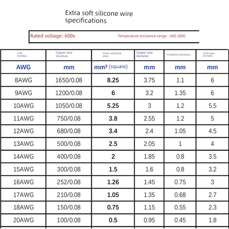 20Awg 耐高温超软硅酮线锂电池电源汽车铜芯线国家标准8