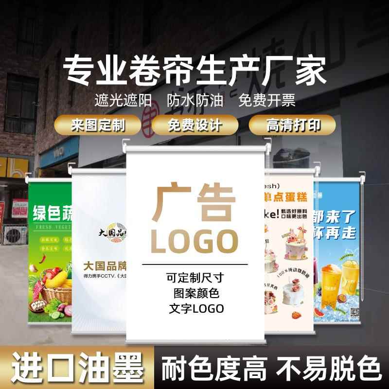 定制图案logo广告卷帘遮阳隔热防晒商铺银行办公室卷拉式 升降窗帘