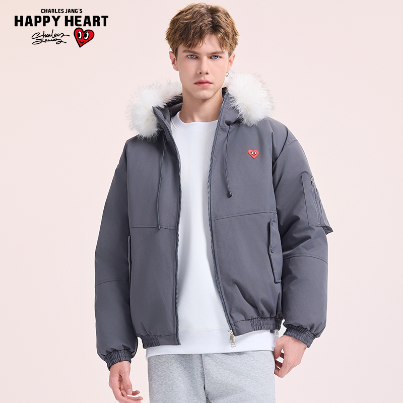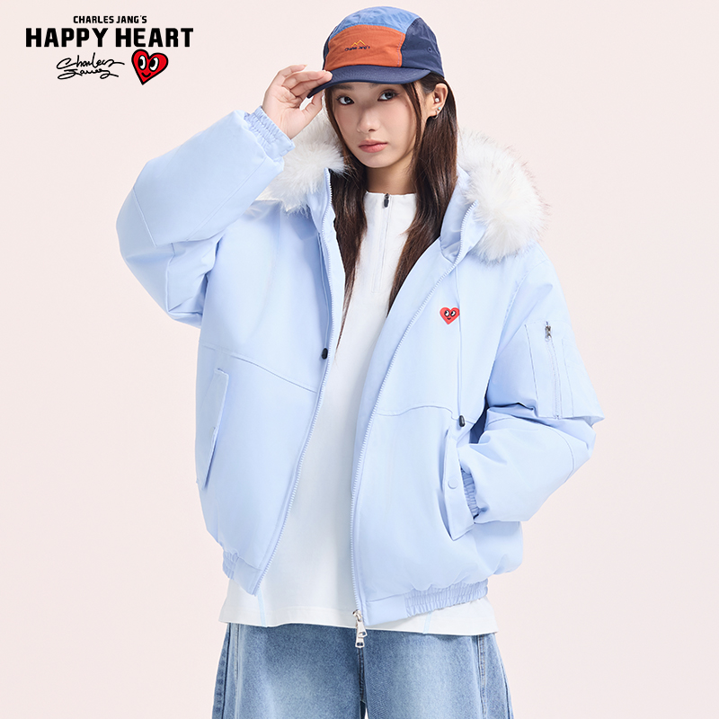 五只白鹅2025秋冬男女加绒加厚保暖可拆卸衣领羊毛防风外套棉服