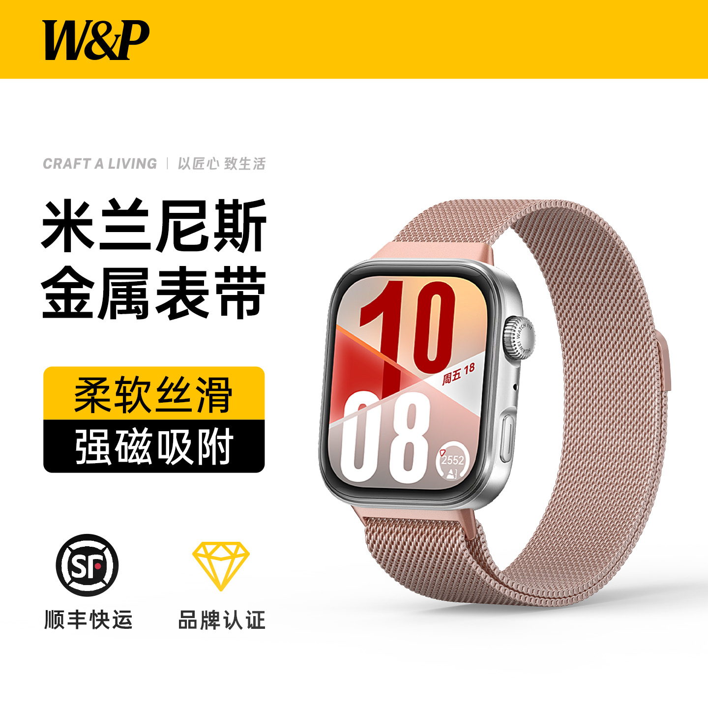4Pro腕带新款 W&P2025新款 fit3 金属磁吸不锈钢透气手表带男女wp 米兰尼斯适用华为fit4表带华为watch