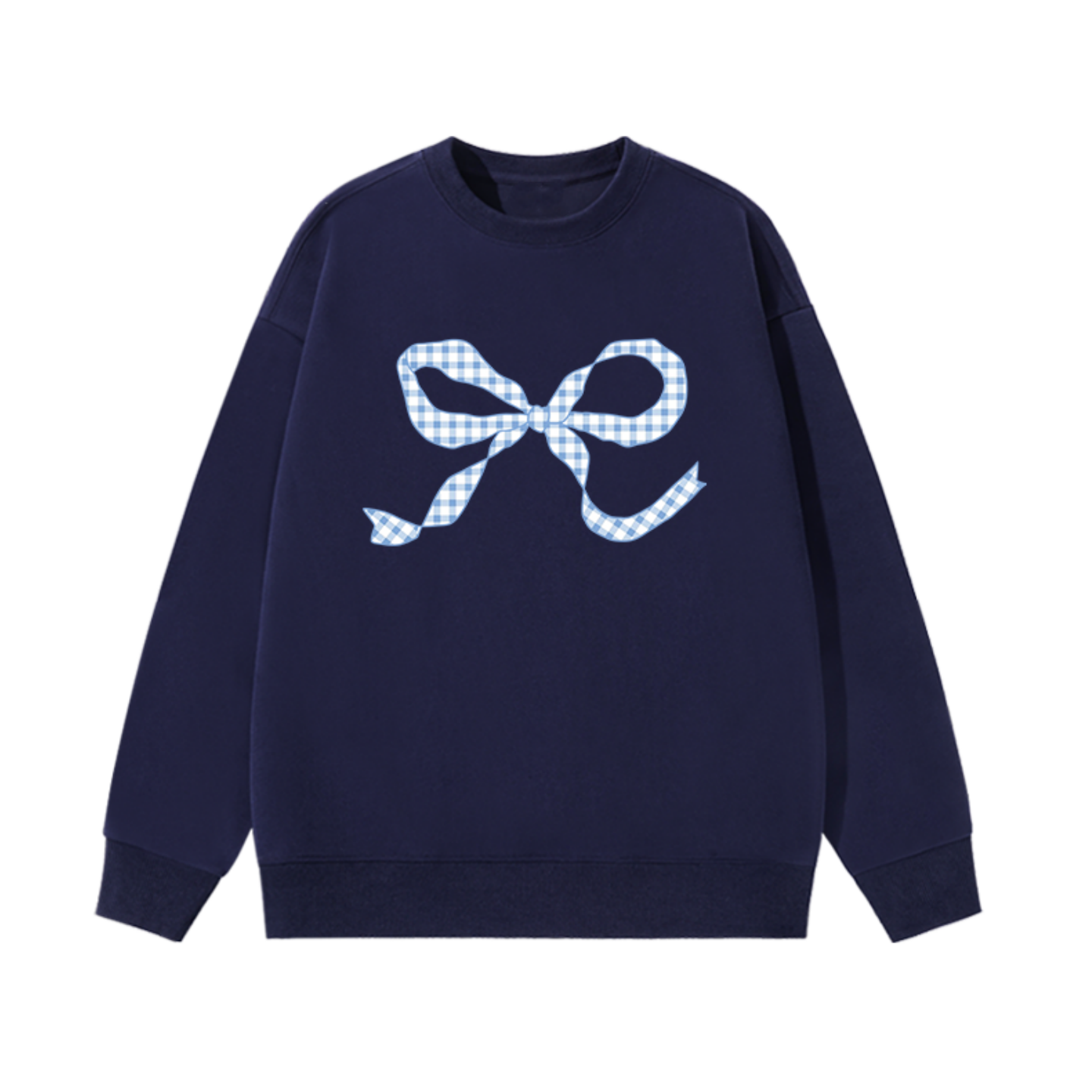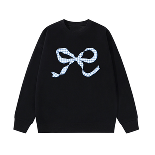 韩版 格子蝴蝶结圆领韩系慵懒风重磅卫衣女2025新款 款 秋季 上衣 爆款