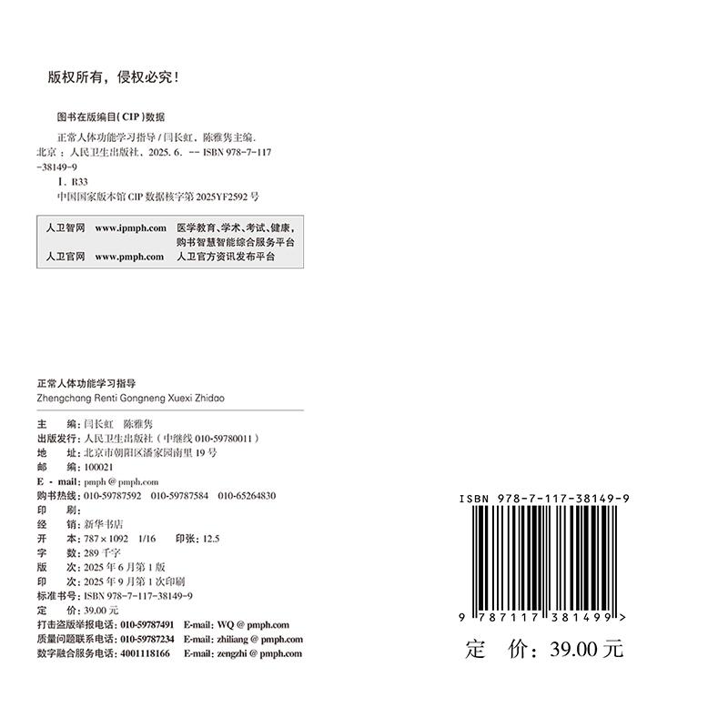 高职高专教材护理学专业配套习题 人民卫生出版 闫长虹 平装 社9787117381499 陈雅隽 正常人体功能学习指导