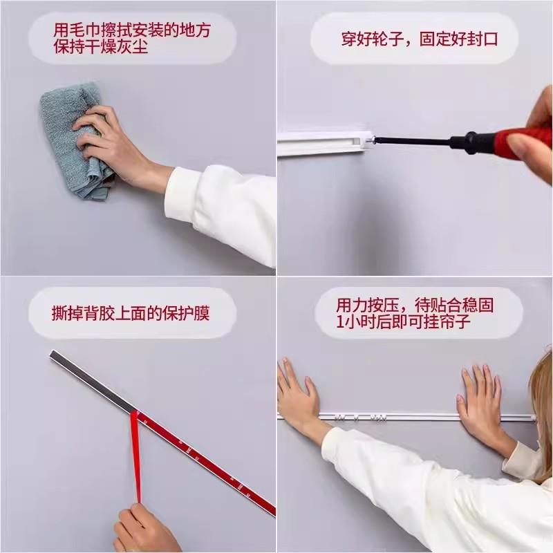 免打孔窗帘轨道安装 学生宿舍遮挡帘子 粘滑道门帘滑轨导轨顶侧装