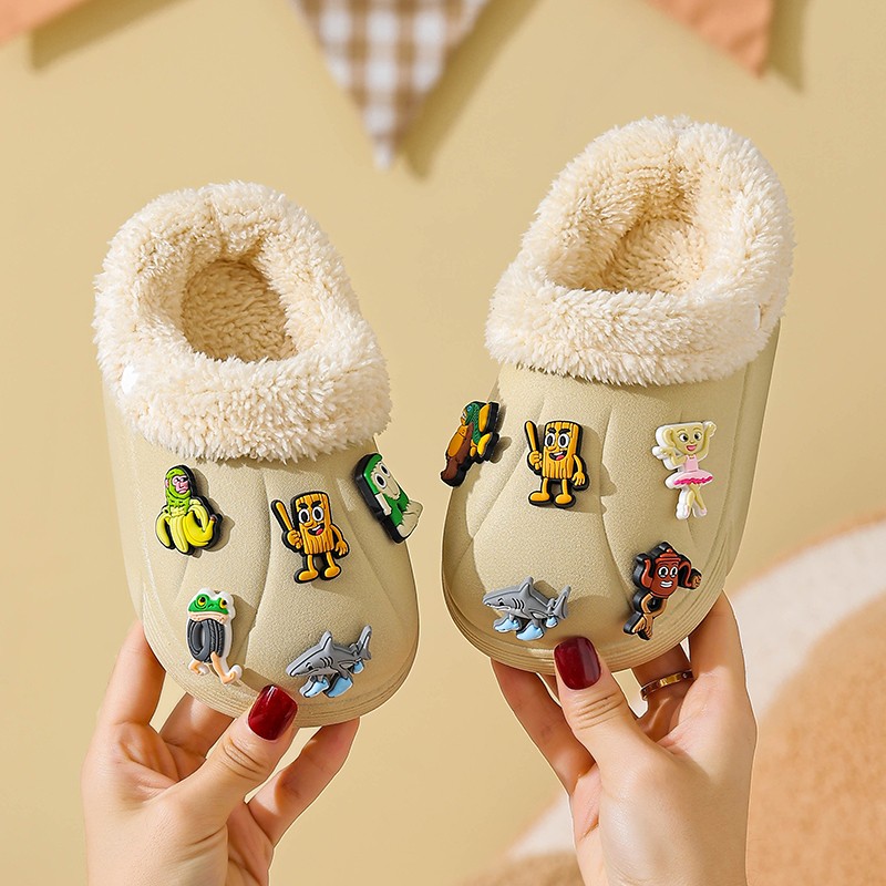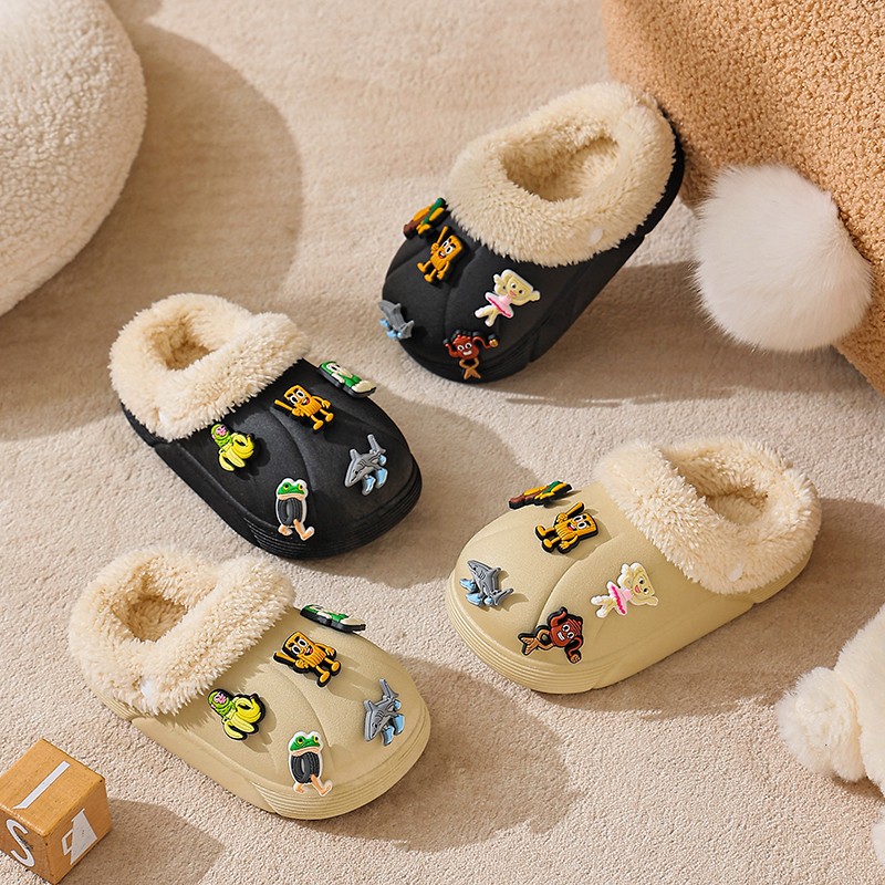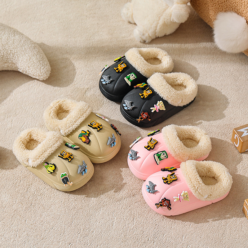 室内男童家居防水小孩宝宝毛绒保暖防滑棉鞋 儿童棉拖鞋 女童秋冬季